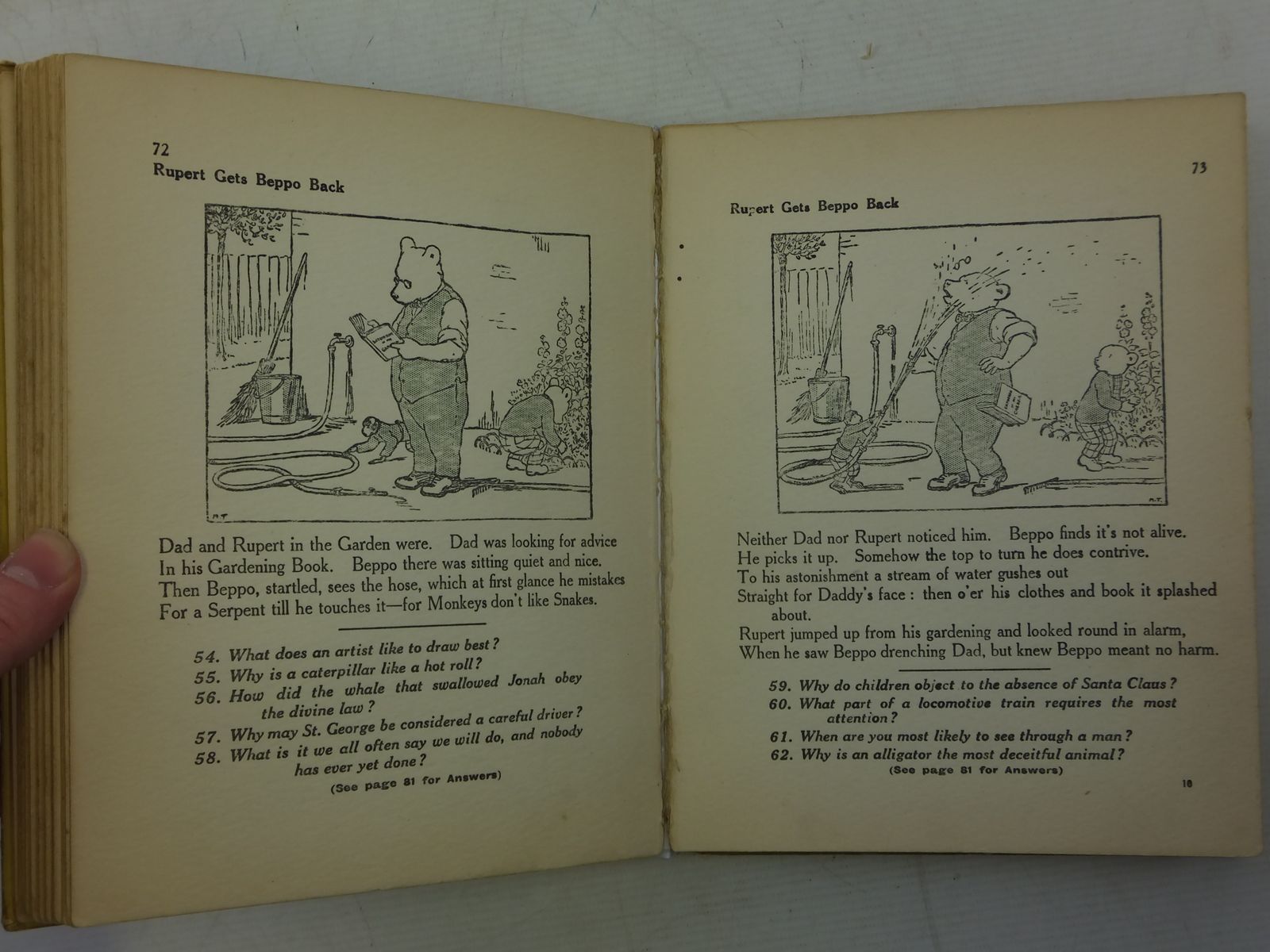 Fair condition. Blue pictorial boards, front shows two children kneeling in front of castle. 7 pop-up models, including Rupert and Punch & Judy. Also includes a Rupert story: Rupert Gets Beppo Back. Colour frontis and b/w illustrations.