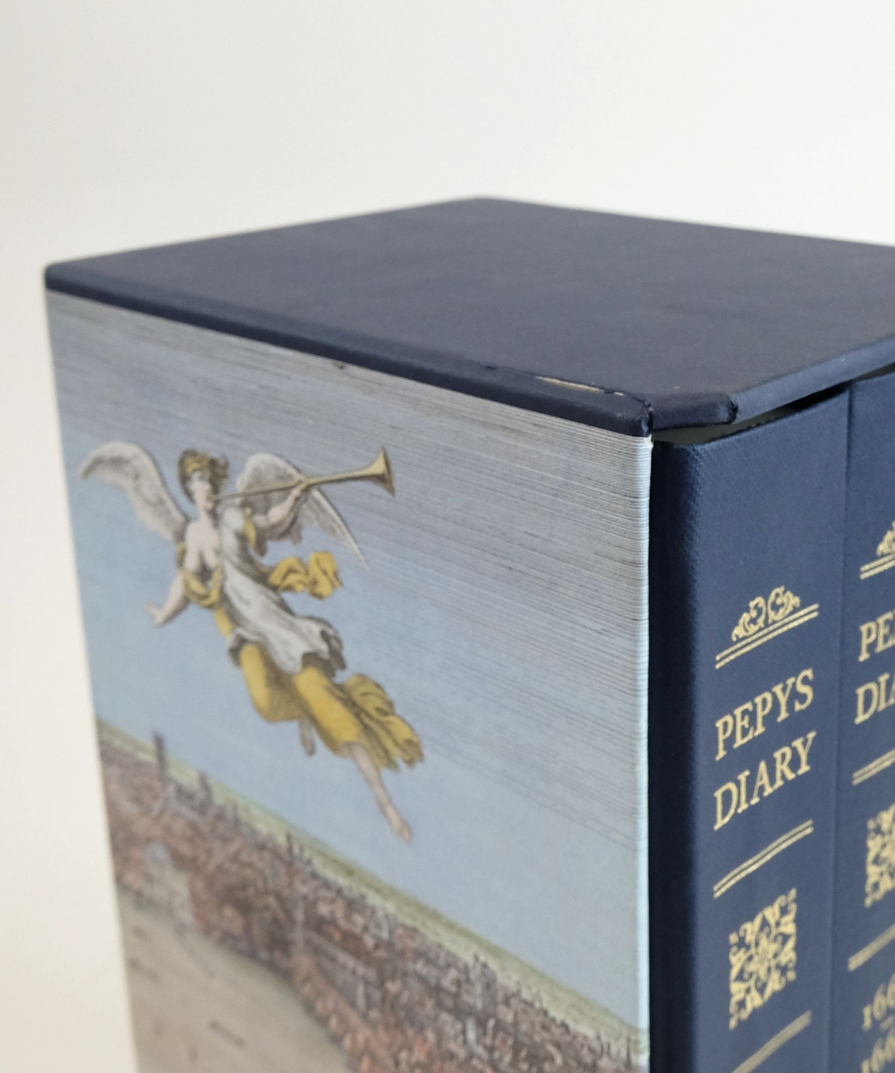 Very good condition. From The Diary of Samuel Pepys, a new and complete transcriptions edited by Robert Latham and William Matthews. Three volumes. Blue cloth with gilt decorations and titles. Colour and b/w plates. Selected and edited by Latham.