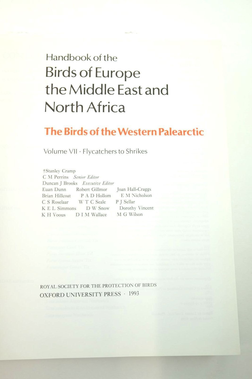 HANDBOOK OF THE BIRDS OF EUROPE THE MIDDLE EAST AND NORTH AFRICA VOLUME VII FLYCATCHERS TO SHRIKES