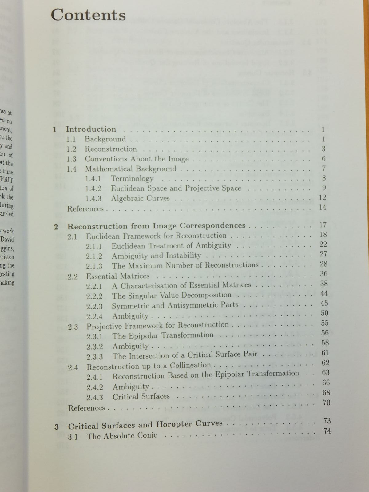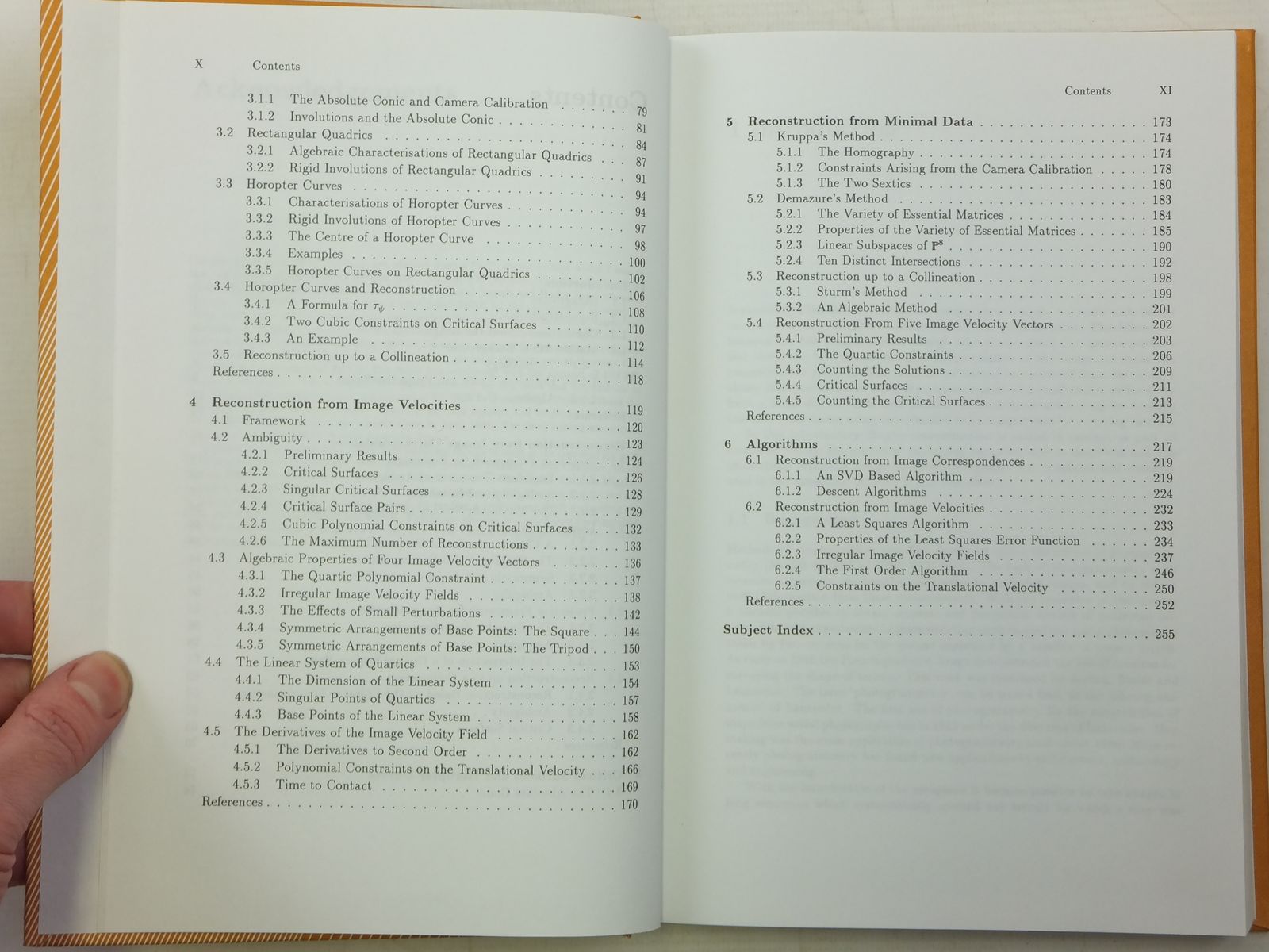 Slightly better than very good condition. Springer Series in Information Sciences. This book presents the mathematics underlying the reconstruction of camera motion from the movements of points in the camera image. It describes recent work employing mathematical methods drawn from linear algebra, projective geometry, algebraic geometry, the theory of transversality and the theory of least-squares approximation. This book is a good starting point for anyone interested in the application of different mathematical techniques to the rapidly expanding field of computer vision, especially in the areas of vehicle guidance, robotics and remote sensing.
