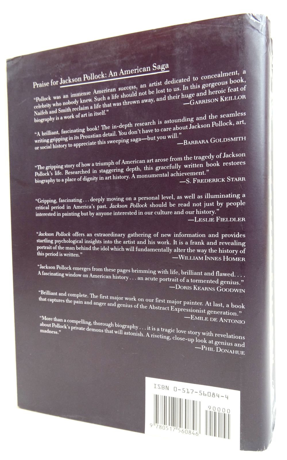 Very good condition in a very good dustwrapper. Jackson Pollock was more than a great artist, he was a creative force of nature. A biography of one of the most compelling figures in all of American culture. White cloth spine with gilt title, white paper boards with embossed title running vertically to front edge. 934 pages including index.