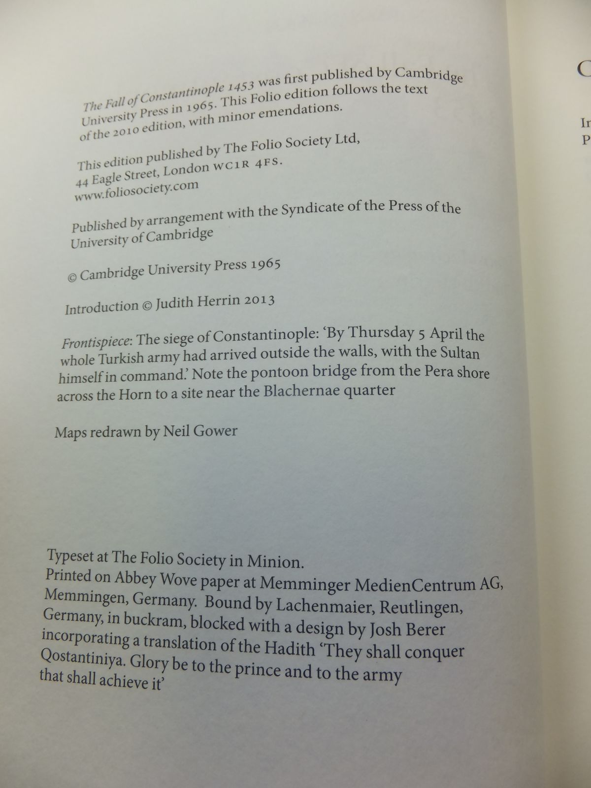 Fine condition. Introduction by Judith Herrin. Red cloth boards, white title to spine and blocked design. Blue map of the Greek World in the Fifteenth Century to endpapers. Colour plates.