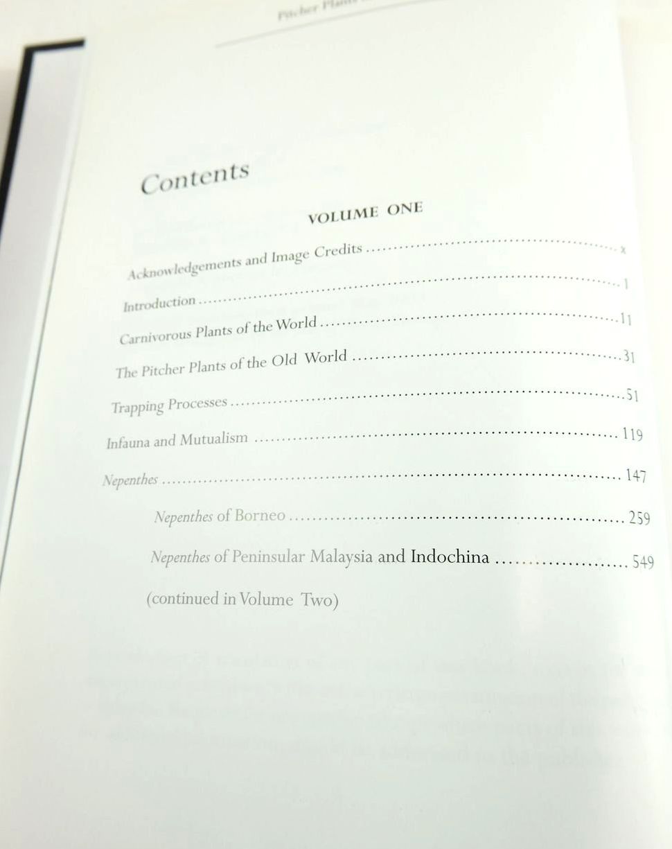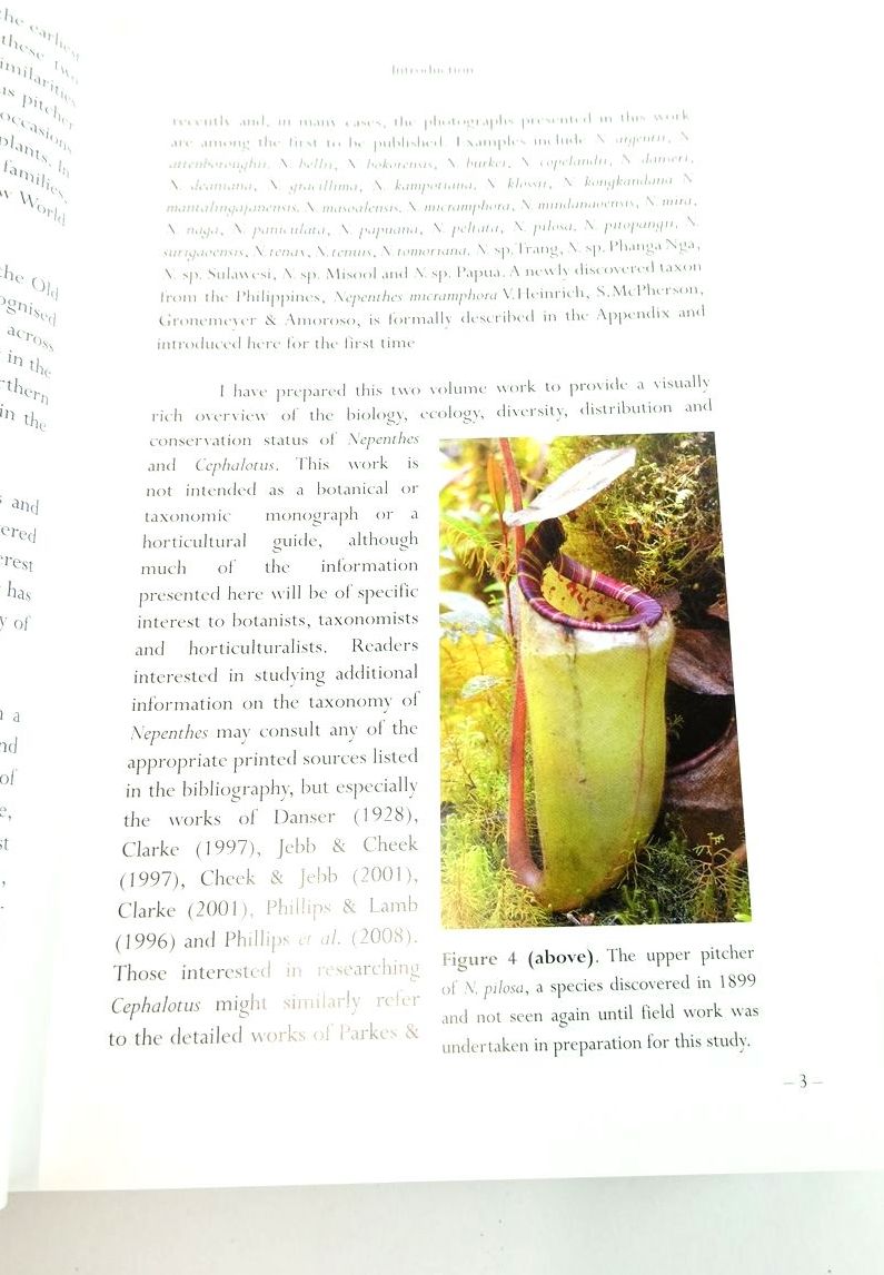 Nearly fine condition in a nearly fine dustwrapper. A two volume work - this is volume one ONLY. Examines genera of Old World pitcher plants (Nepenthes and Cephalotus) and documents the ecology and natural diversity of every known species in detail. Black cloth boards, silver title to spine. Colour photos. xiii and 630 pages.