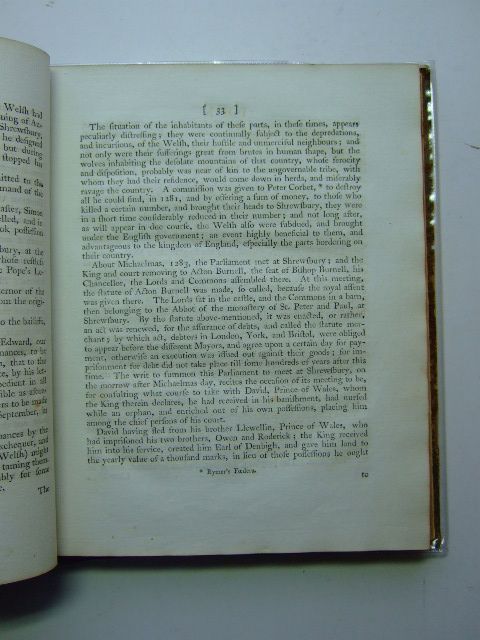 Slightly better than good condition. From its First Foundation to the Present Time. Containing a Recital of Occurrences and Remarkable Events for Above Twelve Hundred Years With an Appendix Containing Several Particulars Relative to Castles, Monastries Etc. in Shropshire. 10 x 8". Modern leather spine with raised bands, gilt titles. Marbled boards. 15 b/w plates. 244 pages + errata and directions to the binder. Includes list of subscribers.