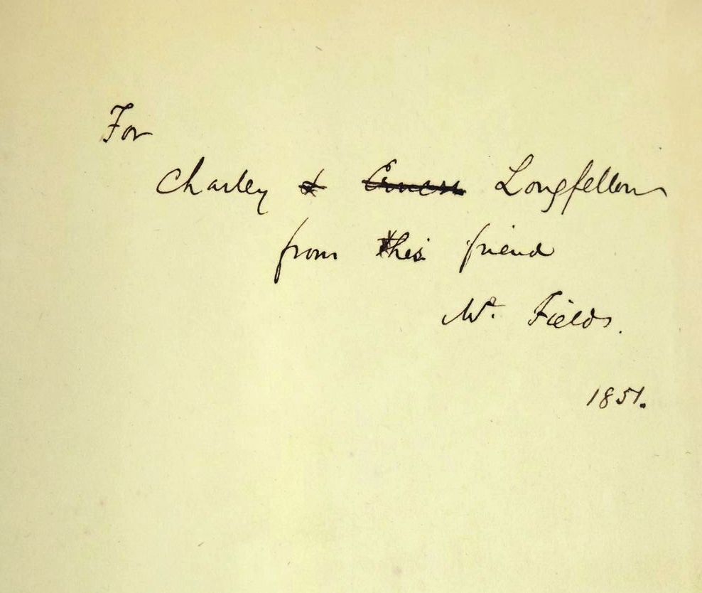 Spine and corners bumped and worn. Loss to top and tail of spine. Inscription in ink to front free-endpaper dedicated to Poet Longellow's two sons (Charley & Ernest), Ernest has been neatly crossed out. The inscription is dated 1851, the printed date on the title-page is 1852. Some hinges pulled, some page browning.