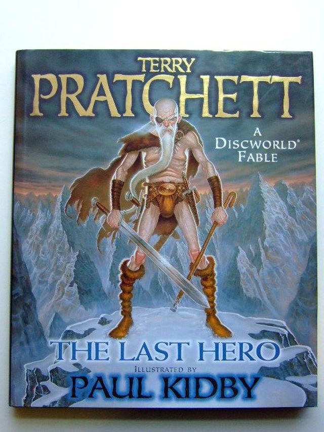Fine condition in a fine dustwrapper. A Discworld Fable. The last hero in the world is going to return what the first hero stole. With a venegeance. That'll mean the end of the world, if no one stops him in time... Large format. Blue paper boards, silver title to spine. Colour illustrations. 158 pages.