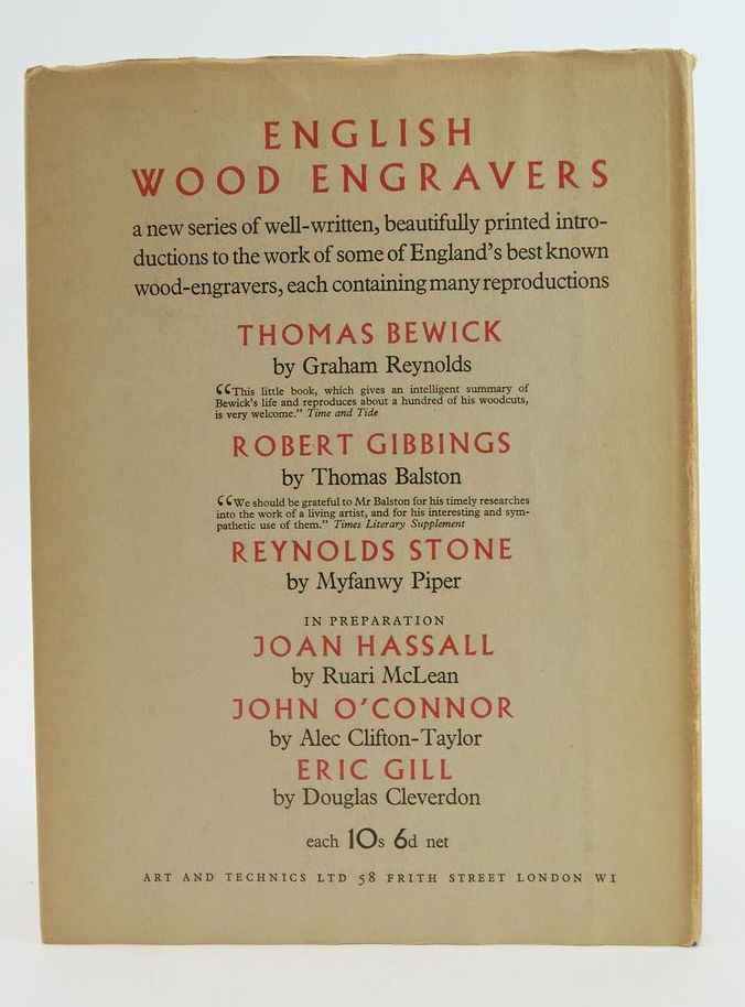 Very good condition in a very good dustwrapper. A survey by Thomas Balston and over 100 engravings by Eric Gill, Eric Ravilious, Gordon Craig, Robert Gibbings, Joan Hassall and other contemporary wood-engravers. Blue cloth boards with gilt title, brown patterned paper boards. B/w and colour wood engravings. 84 pages.