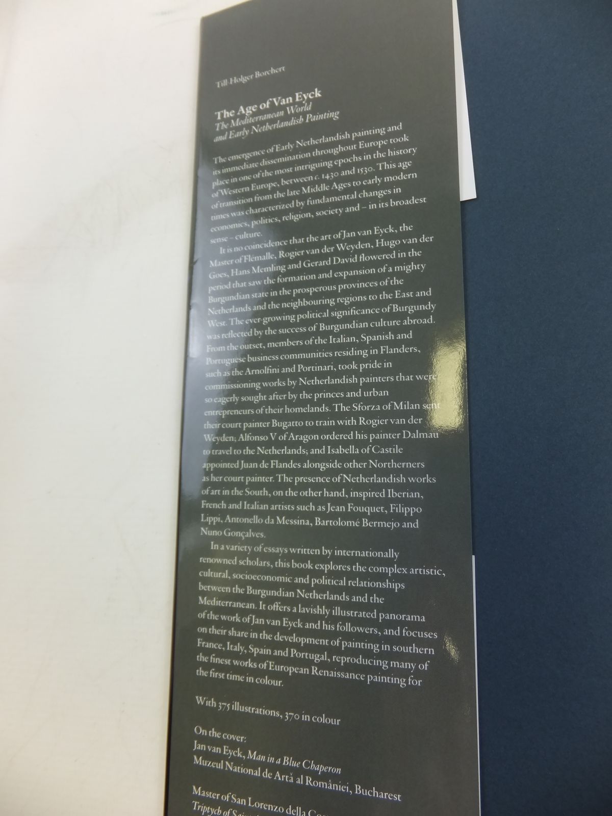 Fine condition in a nearly fine dustwrapper. Large format. The Mediterranean World and Early Netherlandish Painting 1430-1530. First published on the occasion of the exhibition Jan Van Eyck, de Vlaamse Primitieven en bet Zuiden, 1430-1530, held at the Groeningemuseum, Bruges, from March 15 to June 30 2002. With 375 illustrations, 370 of those in colour.