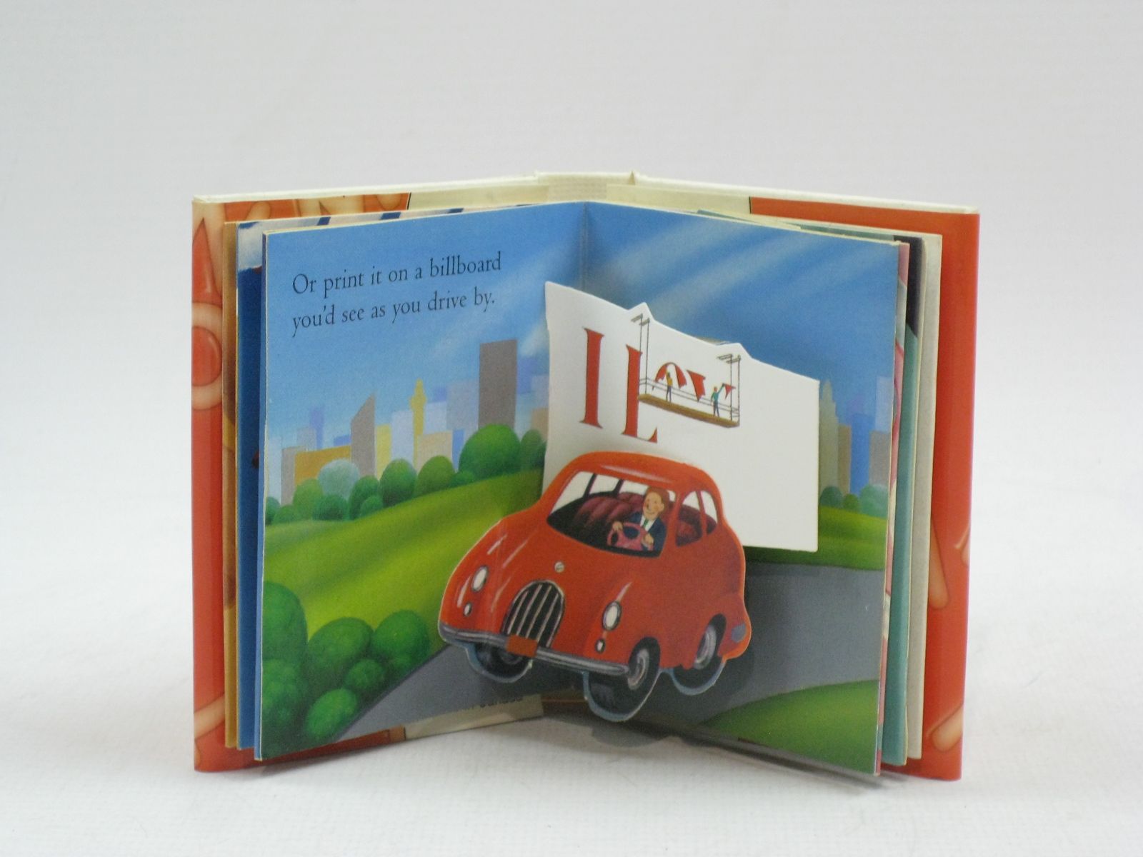 Nearly fine condition in a slightly better than very good dustwrapper. With original pop-up paper sculptures and a heartfelt message about those three important words. Very small format 3.25 x 2.75", white covers with red titles to spine. 6 pop-up scenes. Edited by Tara Ann McFadden. Design and paper engineering by Roger Culbertson.