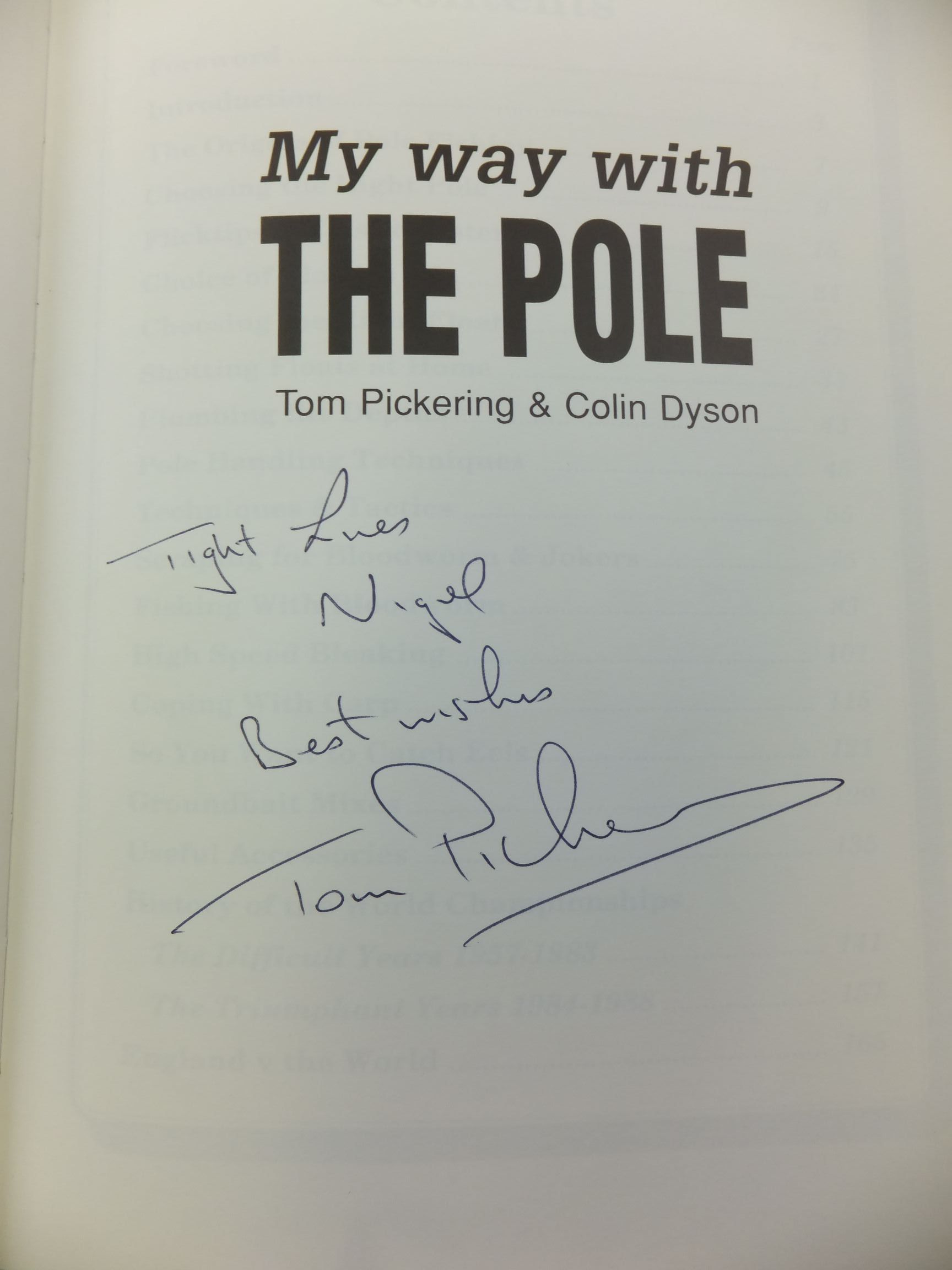 SIGNED by author, with dedication 'Tight Lines Nigel' to title page.