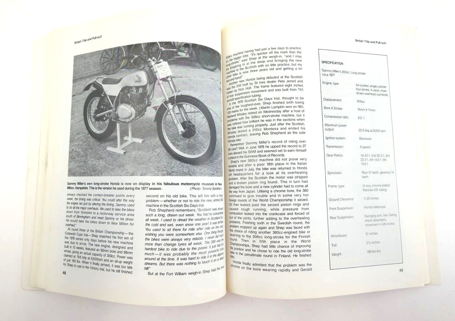 Very good condition. Tracing the history of Honda in motorcycle trials. Foreword by 11-times British Trials Champion Sammy Miller. Cardwraps. 112 pages. B/w photos throughout.