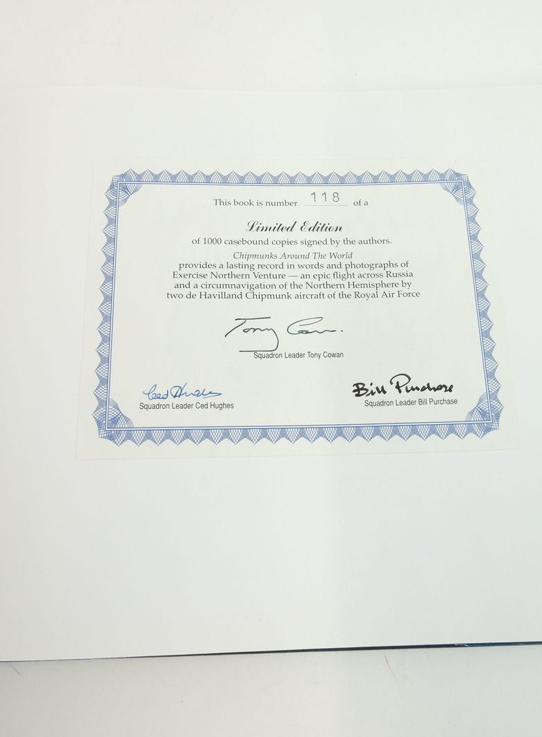 Very good condition in a almost very good dustwrapper. Large oblong format. The cicumnavigation of the northeren hemisphere across Russia, North America and the North Atlantic. Colour photos. Limited to 1000 numbered casebound copies.