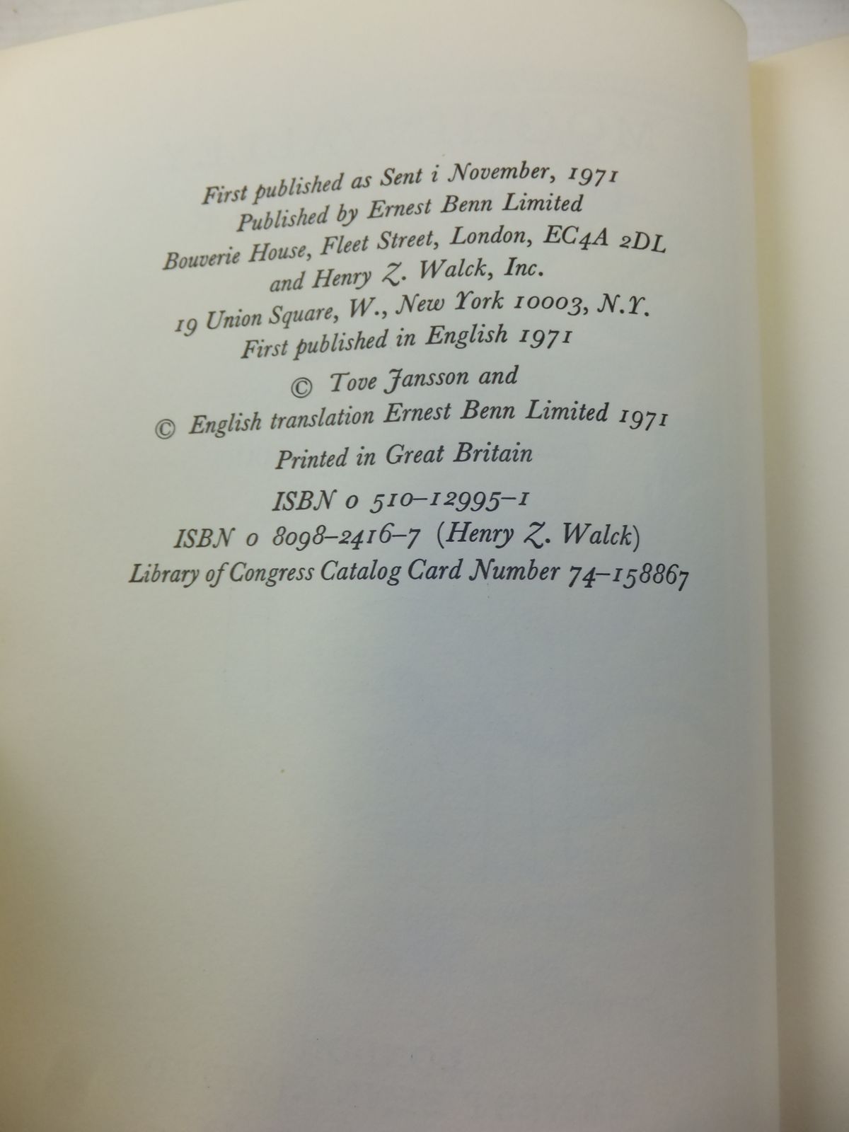 Very good condition in a almost very good dustwrapper. Peach boards, gilt title to spine. B/w illustrations. A Moomin book with no Moomins in it!