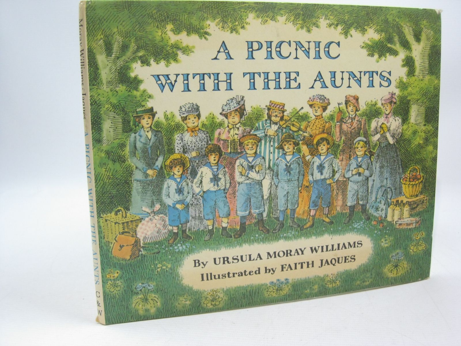 Very good condition in a almost very good dustwrapper. 8.75 x 10.5 ins. Green boards with black illustration on front board, black title to spine. Beautifully and extensively illustrated in colour and b/w. An Edwardian tale of six boys taken by their respective aunts on a picnic on an island in a lake ... and what goes wrong!