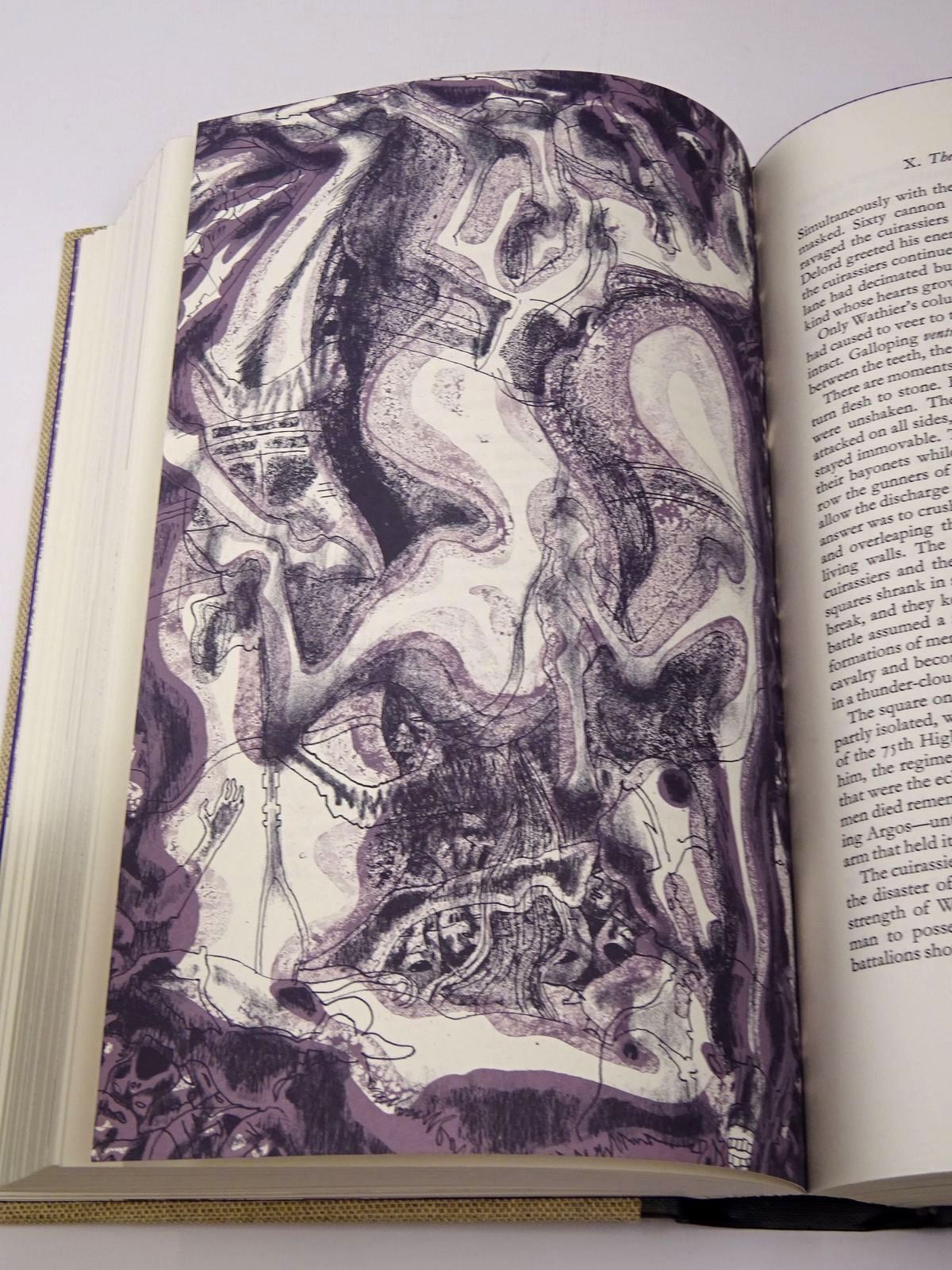 Fine condition. Black cloth spine and rear board with purple title block and vignette, gilt title to spine. Beige cloth with black vignette to front. Translated and with an introduction by Norman Denny. Top edge purple. Purple endpapers. Two-tone full page lithographs.