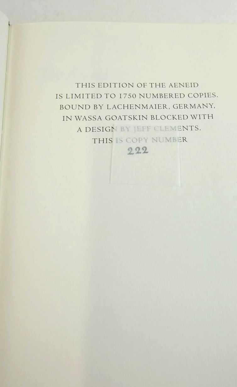 Fine condition. Limited edition of 1750 numbered copies. Bound in Wassa goatskin blocked with a design by Jeff Clements. Colour plates. 448 pages, top edge gilt. Translated by Fagles, introduction and notes by Knox.