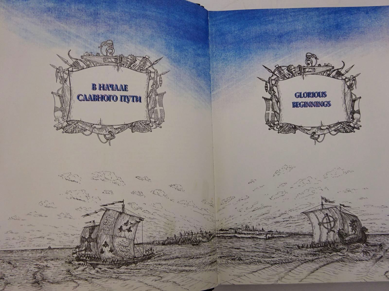 Slightly better than very good condition. Large format. Metal look covers with raised titles and borders and decorations. Text in Russian and English. Translated by Protopopov. Colour & b/w illustrations.