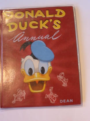 Slightly better than very good condition. Glazed pictorial boards, large picture of Donald's head to front board. Yellow pictorial endpapers. First story "Donald At The Fair". 61 pages. 11 x 8.5".