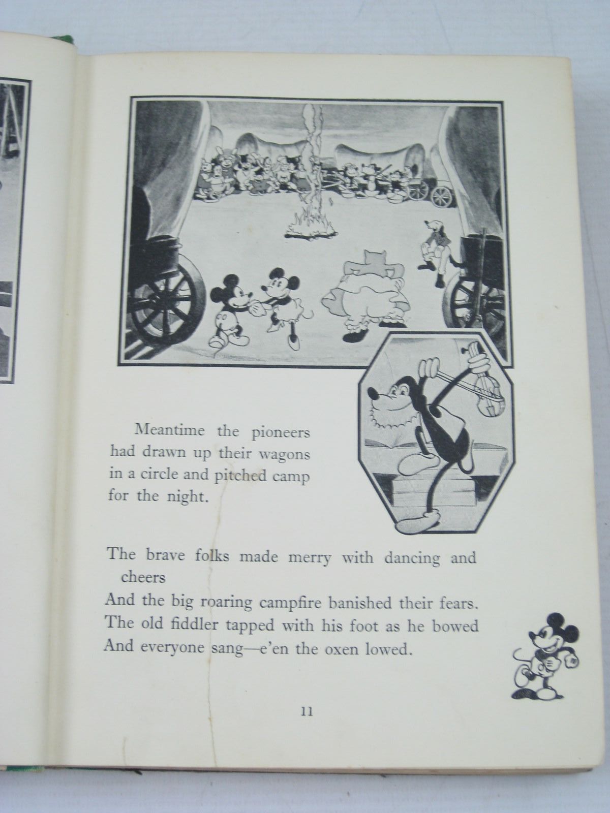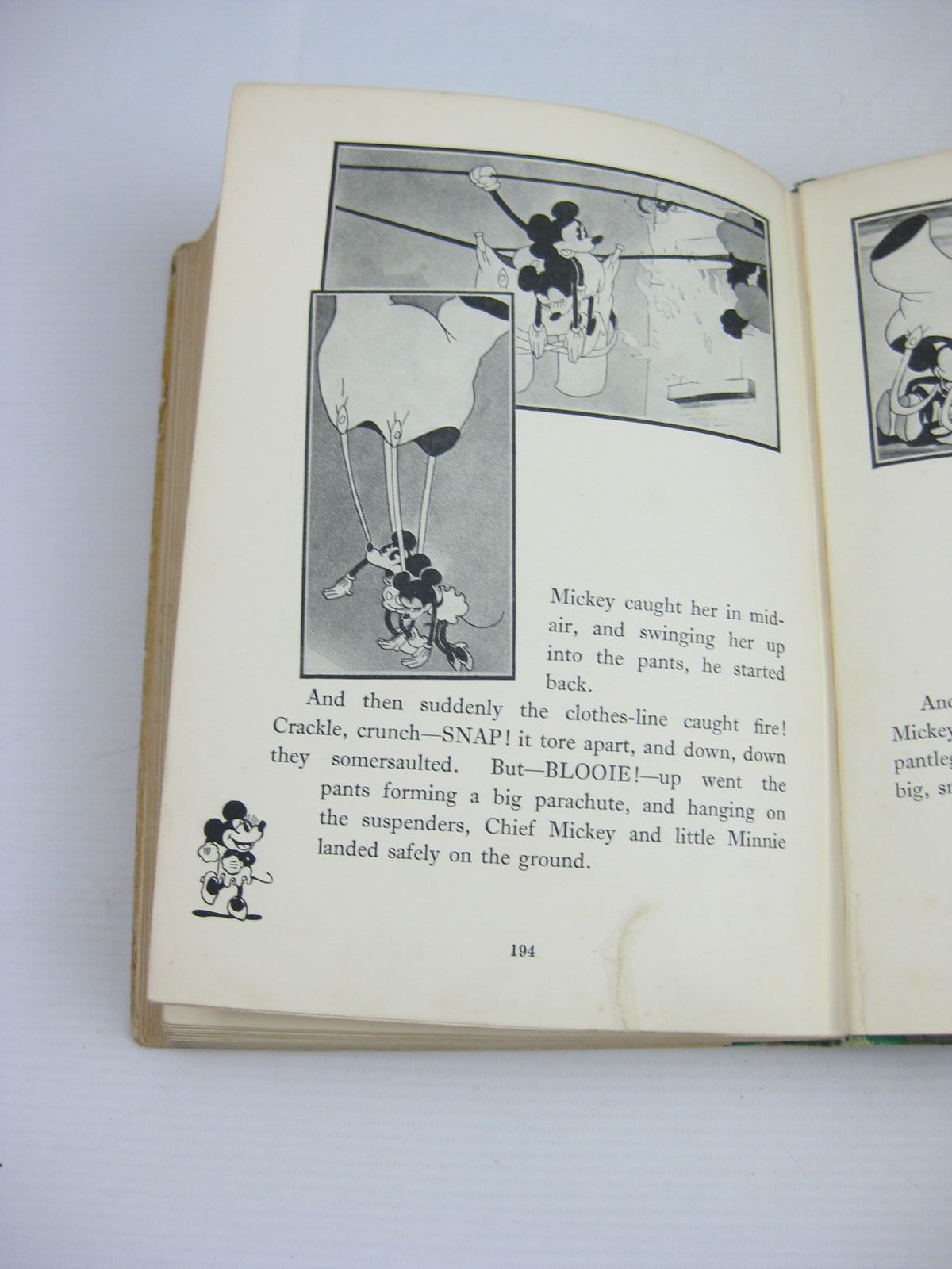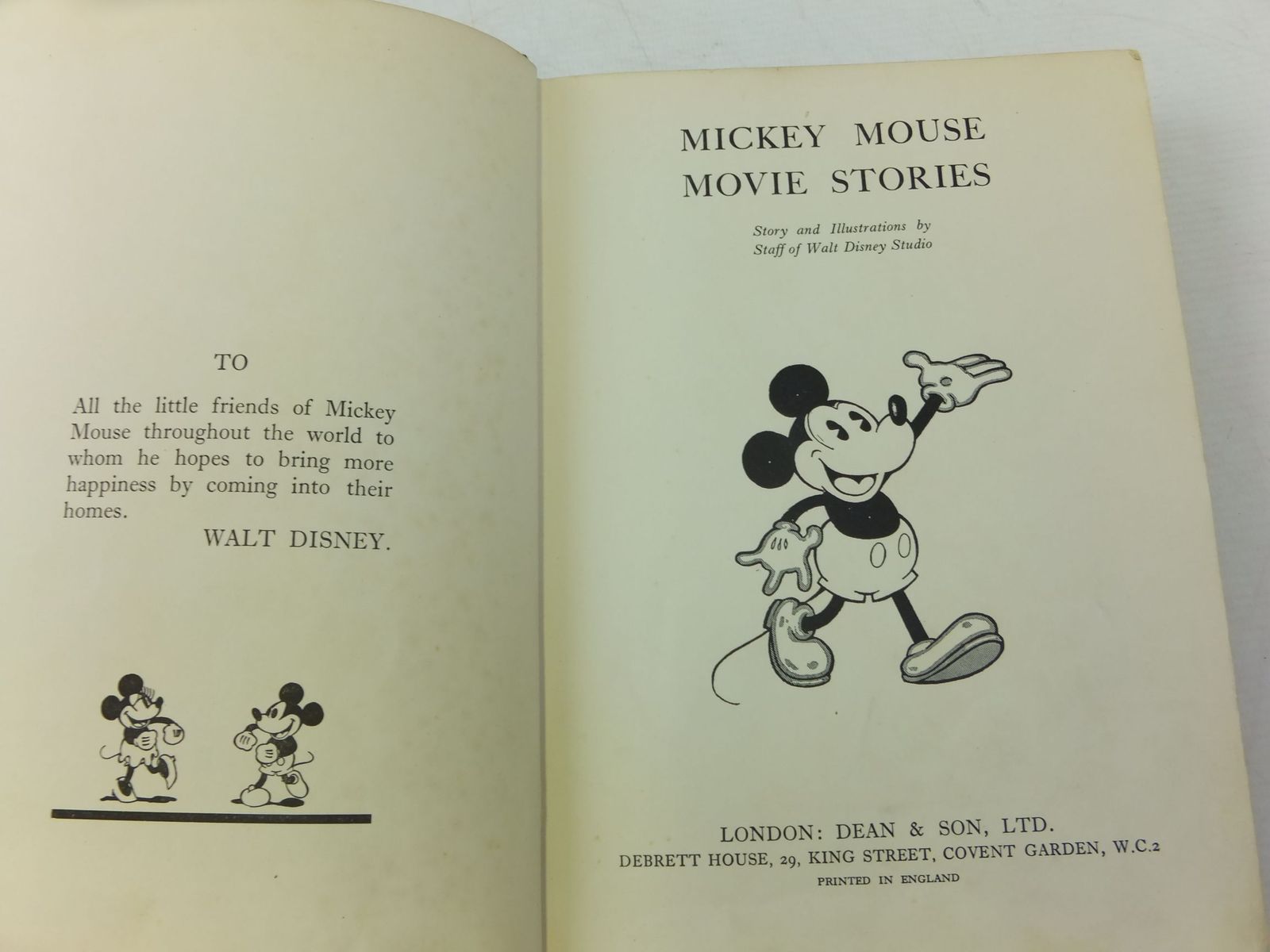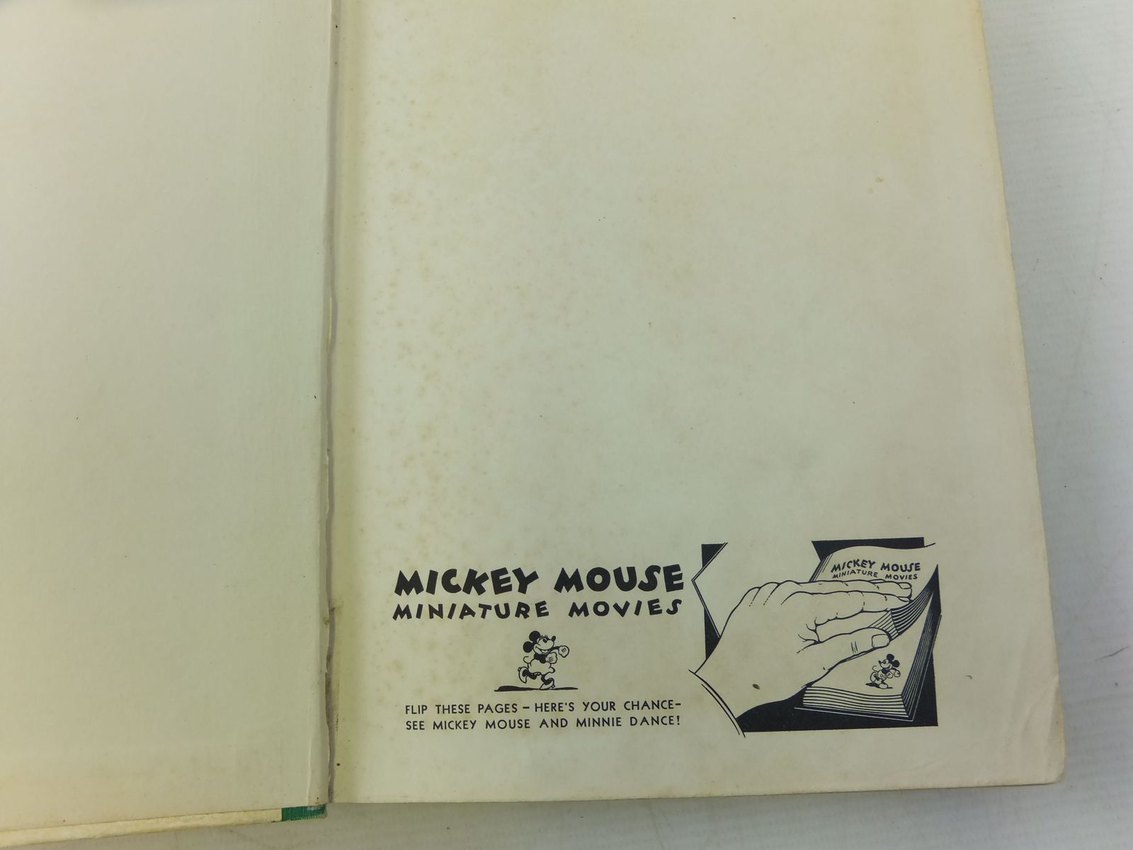 Almost very good condition. Green cloth spine, pictorial front board. 196 pages. B/w illustrations from cartoon films. Flip the pages to see Mickey and Minnie dance in the corners!