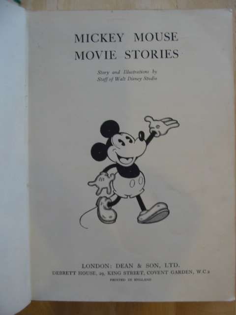 Good condition. Green cloth spine, pictorial front board. 196 pages. B/w illustrations from cartoon films. Flip the pages to see Mickey and Minnie dance in the corners!