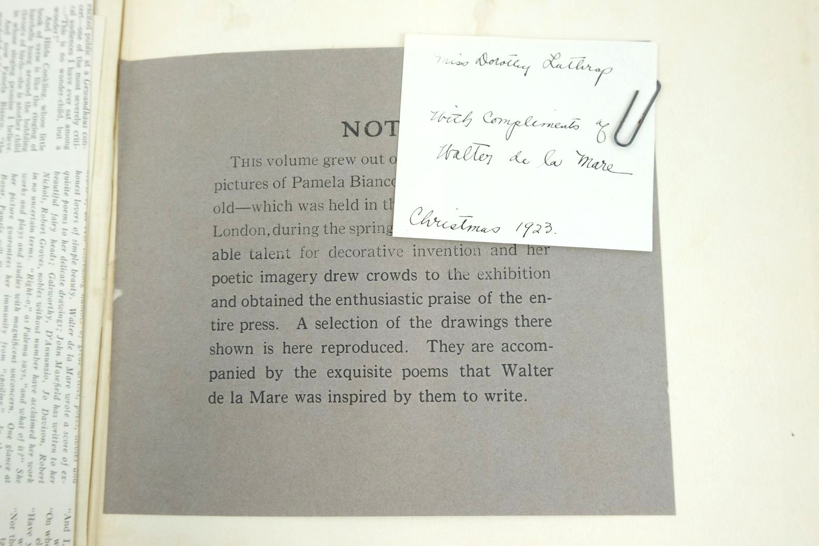 Very good condition in a very good dustwrapper. "This volume grew out of an exhibition of the picture of Pamela Bianco (aged 12) which was held in 1919, they are accompanied by exquisite poems that De La Mare was inspired by them to write. Beautiful colour and b/w pictures. Large format. White boards with grey titles and illustration to front cover. This edition has the Angel & Child plate facing page 19.