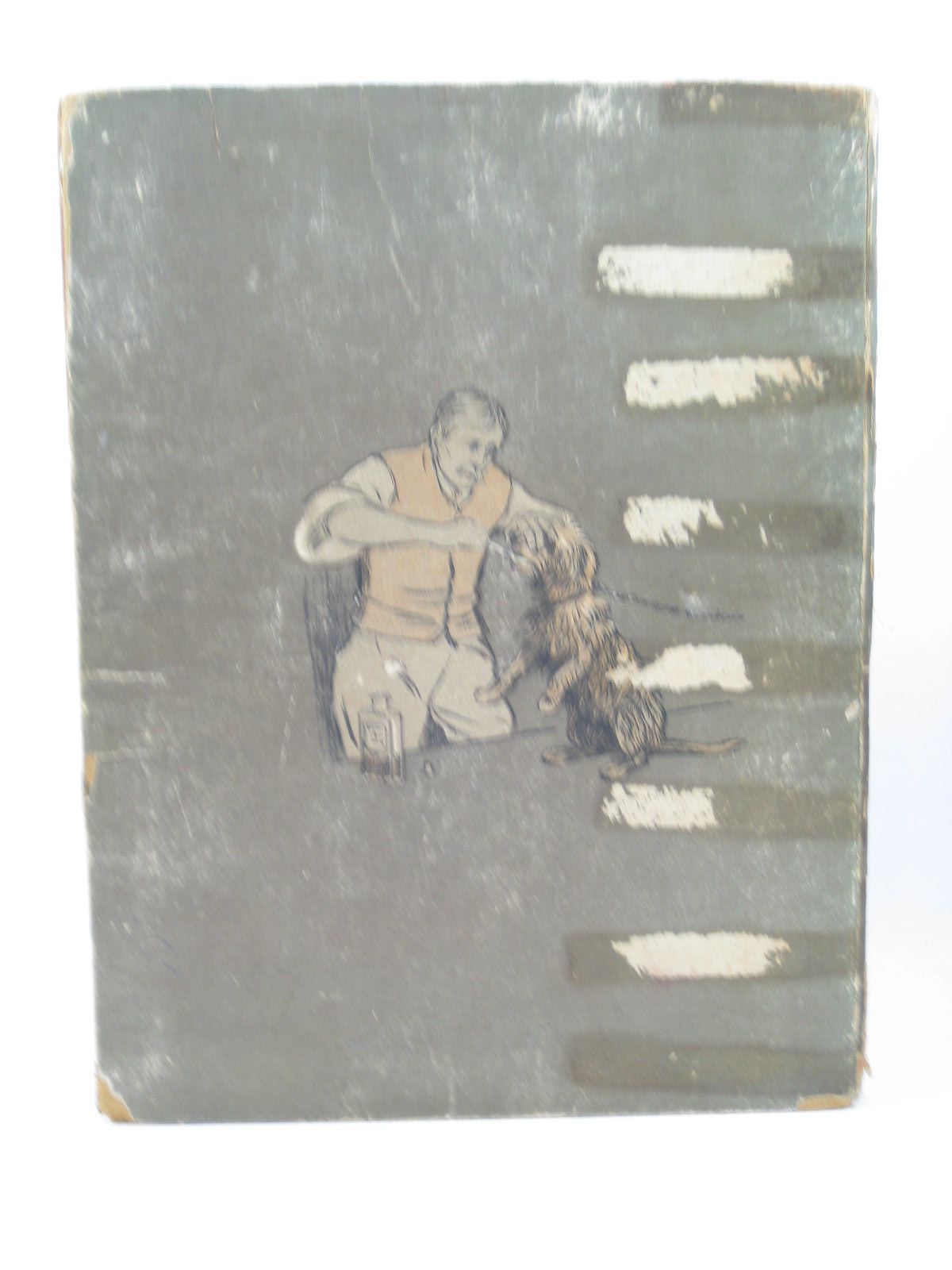 Covers are edge worn, scuffed with 8 d tape marks across the spine/covers (see photos). Spine covering is chipped with loss. 8 old tape marks across the joints of the books which have browned and affect the prelims and last few pages. There is also sticky fabric reinforcing the joints. Staples are rusty. Joint between frontis and title-page is cracked. Contents are foxed, grubby and lightly browned. Not as bad as it sounds! Still a decent copy.