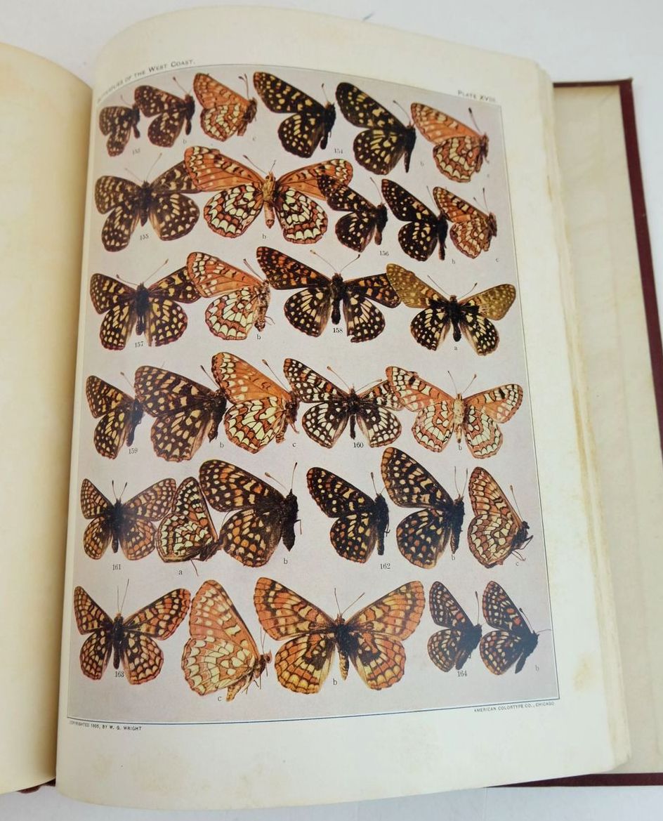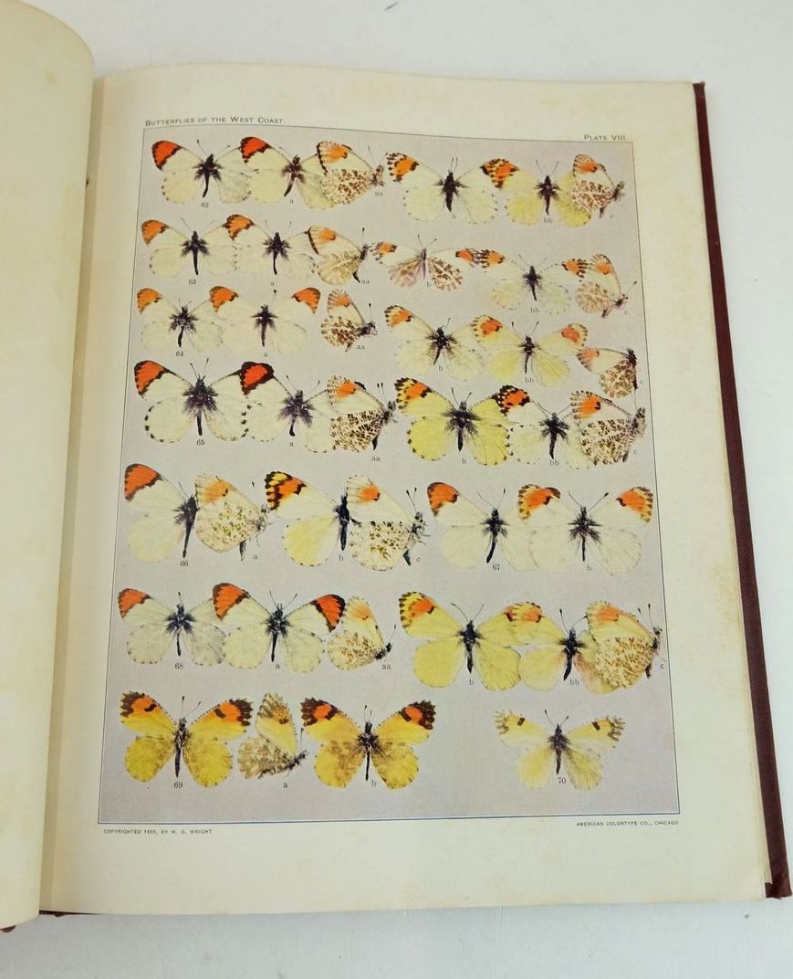 Almost very good condition. Being Actual Photographs, Life-size, and in all Their Natural Colors. The colored plates herein are Sample Copies of the plates which form the illustrations of "The Butterflies of the West Coast," by the same author, and these plates in sets are now offered as an abridgement of that book. Burgundy cloth boards, black title to front board, spine is untitled. 32 colour plates.