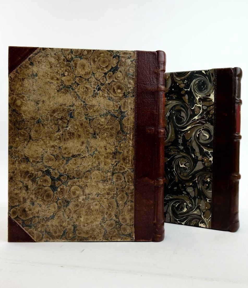 Volume II binding appears to be a more modern binding than volume I. Both volumes expertly repaired, volume I has contemporary notes bound in at front. Some paper repair also. Address stamp to volume I title page (small). Foxing and dampstaining affecting plates as well as text mainly to volume II. Marbled paper boards of volume I are scuffed. Bindings of both volumes are nice and tight.