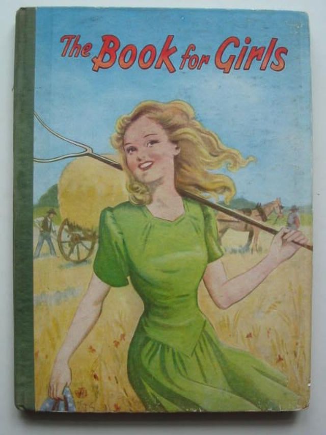 Good condition. Anthology of girls stories. Cloth spine. Pictorial front board shows a girl in a green dress in a hay collecting field.