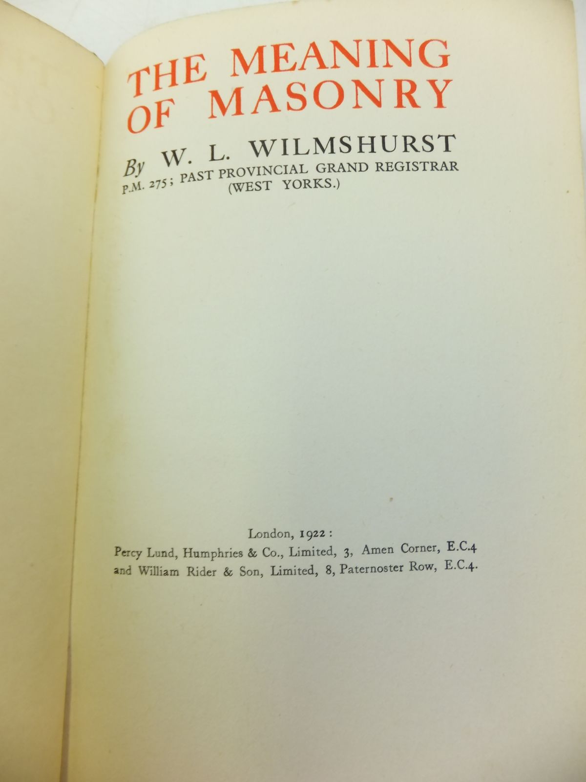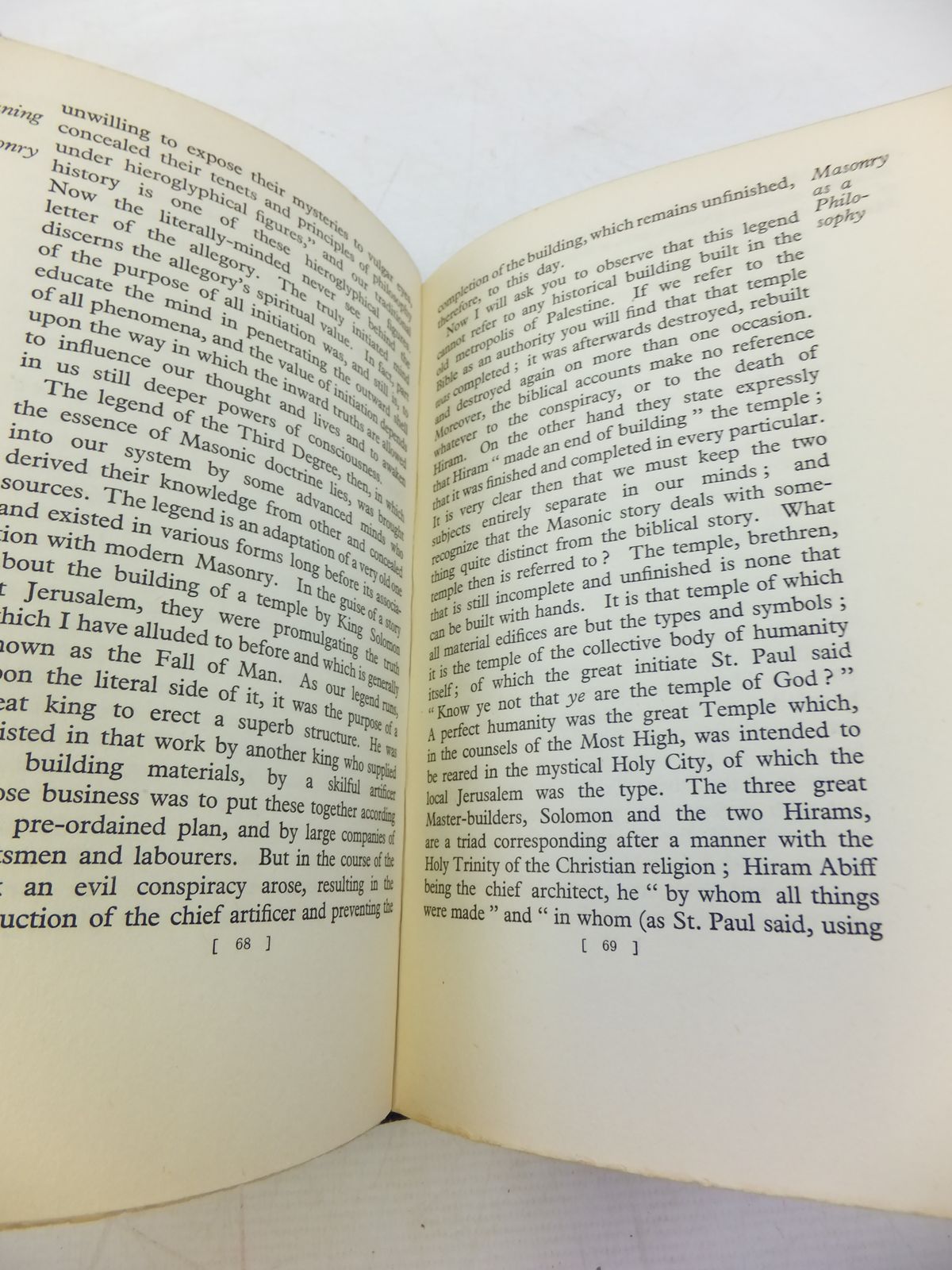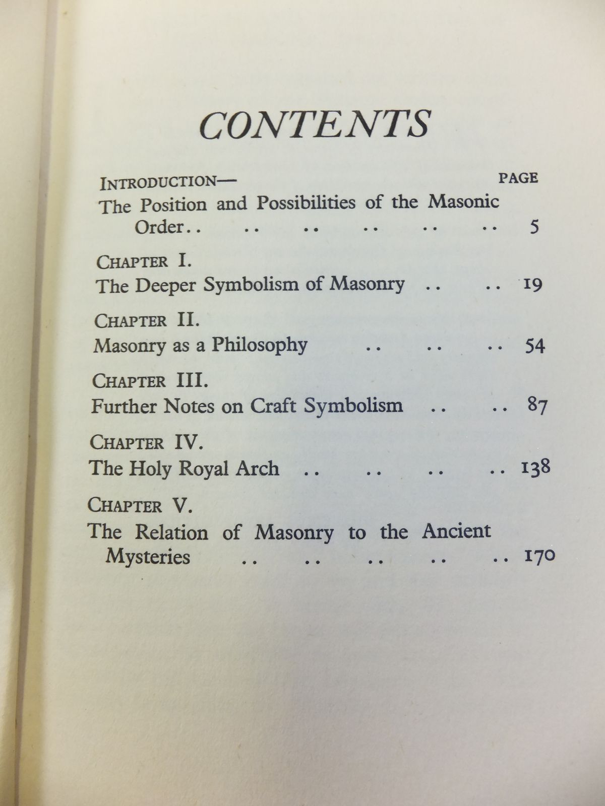 Very good condition. Blue cloth with gilt titles. Looks at The deeper symbolism of Masonry; as philosophy; The Holy Royal Arch and more.
