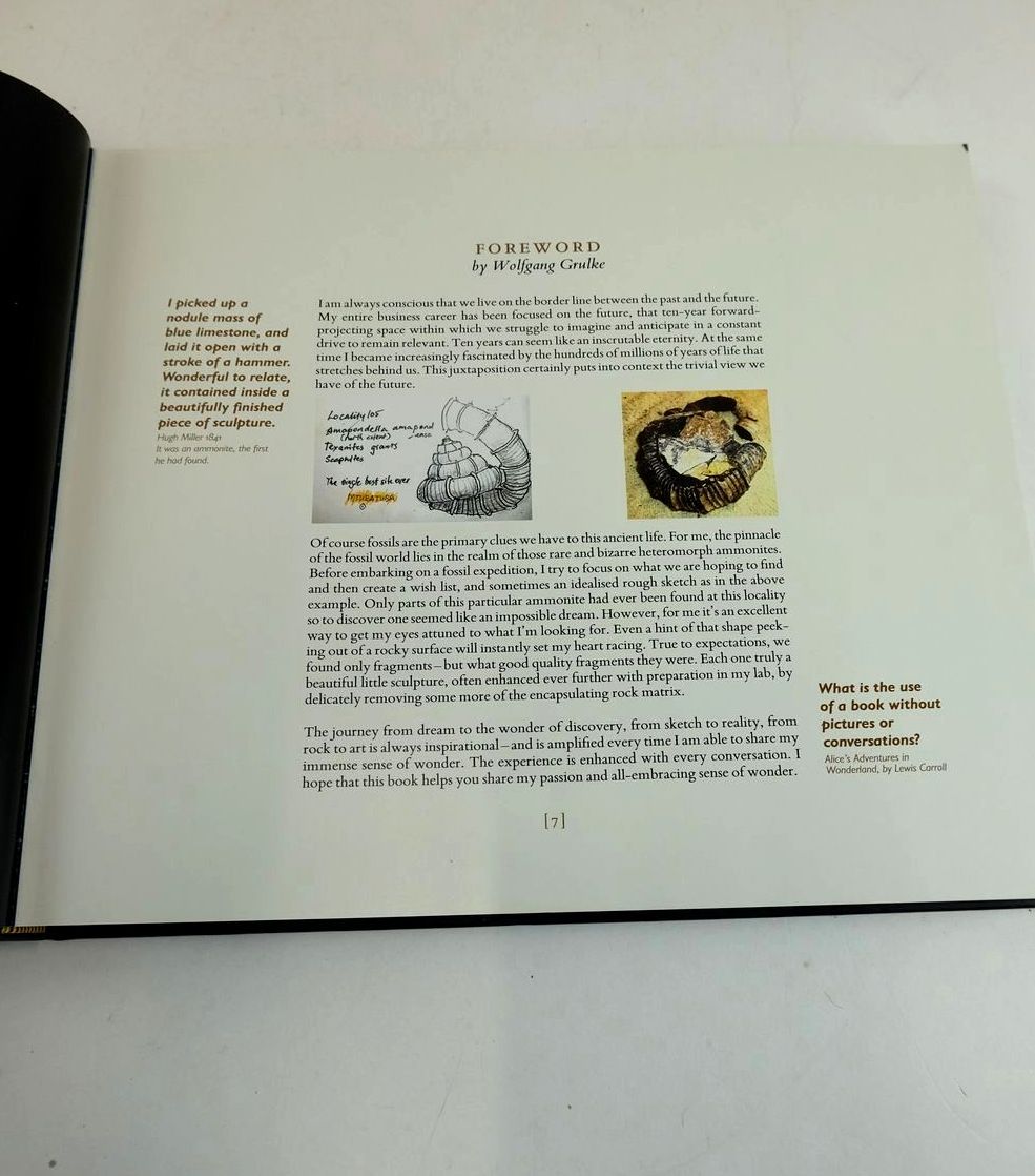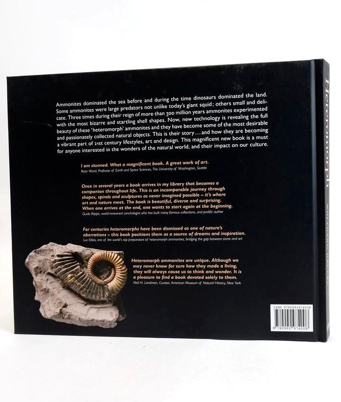 Slightly better than very good condition. Ammonites dominated the sea before and during the time of the dinosaurs. Some ammonites were large predators not unlike today's giant squid; others small and delicate. Three times during their reign of more than 300 million years ammonites experimented with the most bizarre and startling shell shapes. Now, new technology is revealing the full beauty of these 'heteromorph' ammonites and they have become some of the most desirable and passionately collected natural objects. This is their story... and how they are becoming a bivrant part of 21st century lifestyles, art and design. Large oblong format. Matt black pictorial boards. Colour photos and illustrations. 224 pages.