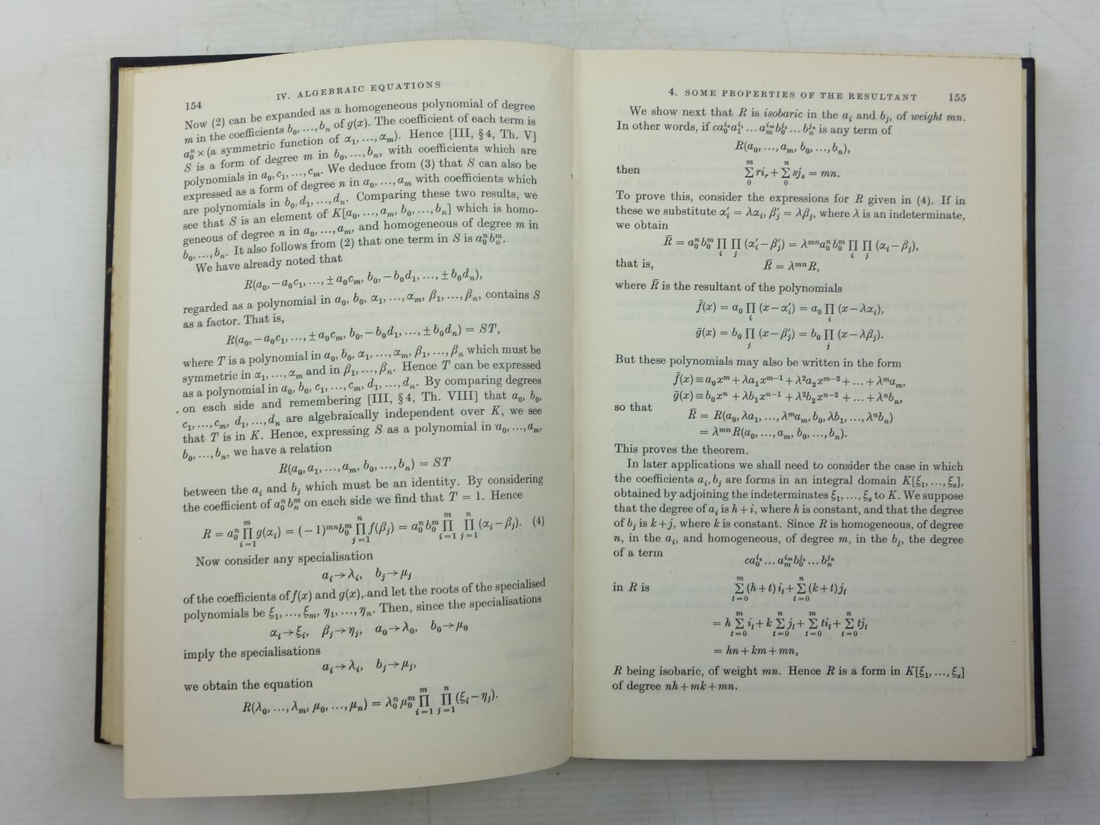 Very good condition. Blue cloth, gilt titles to spines. 5 books in 3 volumes. Book 1 - Algebraic Preliminaries, Book 2 - Projective Space, Book 3 - General Theory of Algebraic Varieties In Projective Space, Book 4 - Quadrics and Grassmann Varieties, Book 5- Birational Geometry.