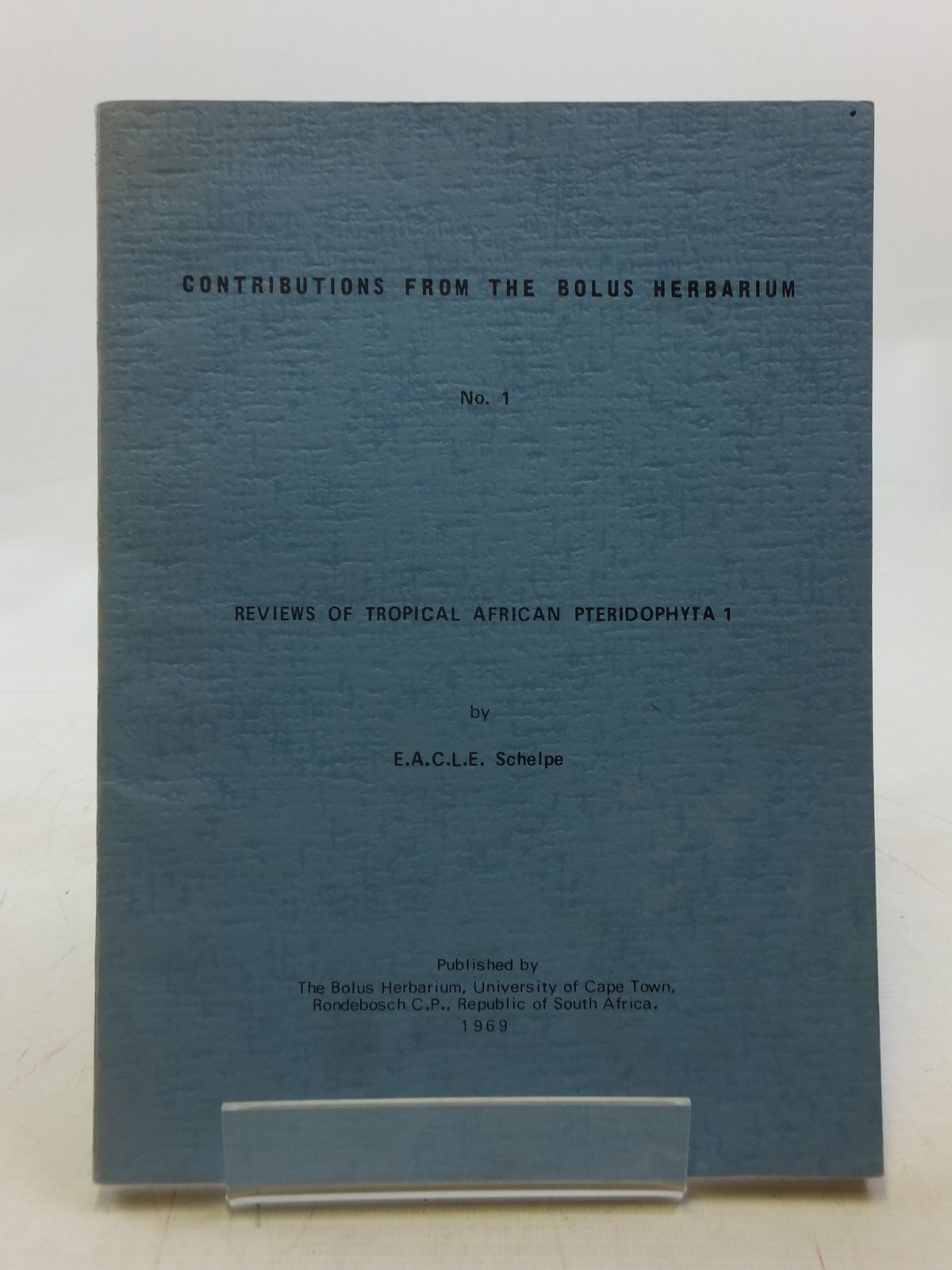 Blue card wraps. Review of Tropical African Pteridophyta 1. 132 pages. A few small ink annotations to contents.