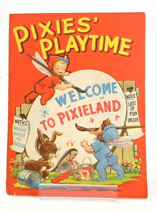 Red pictorial paperwraps. Welcome to Pixieland. Full page colour illustrations, with two lines of text below. 8 pages including covers. Staple binding. Light edge rubbing to covers. Pale page browning.