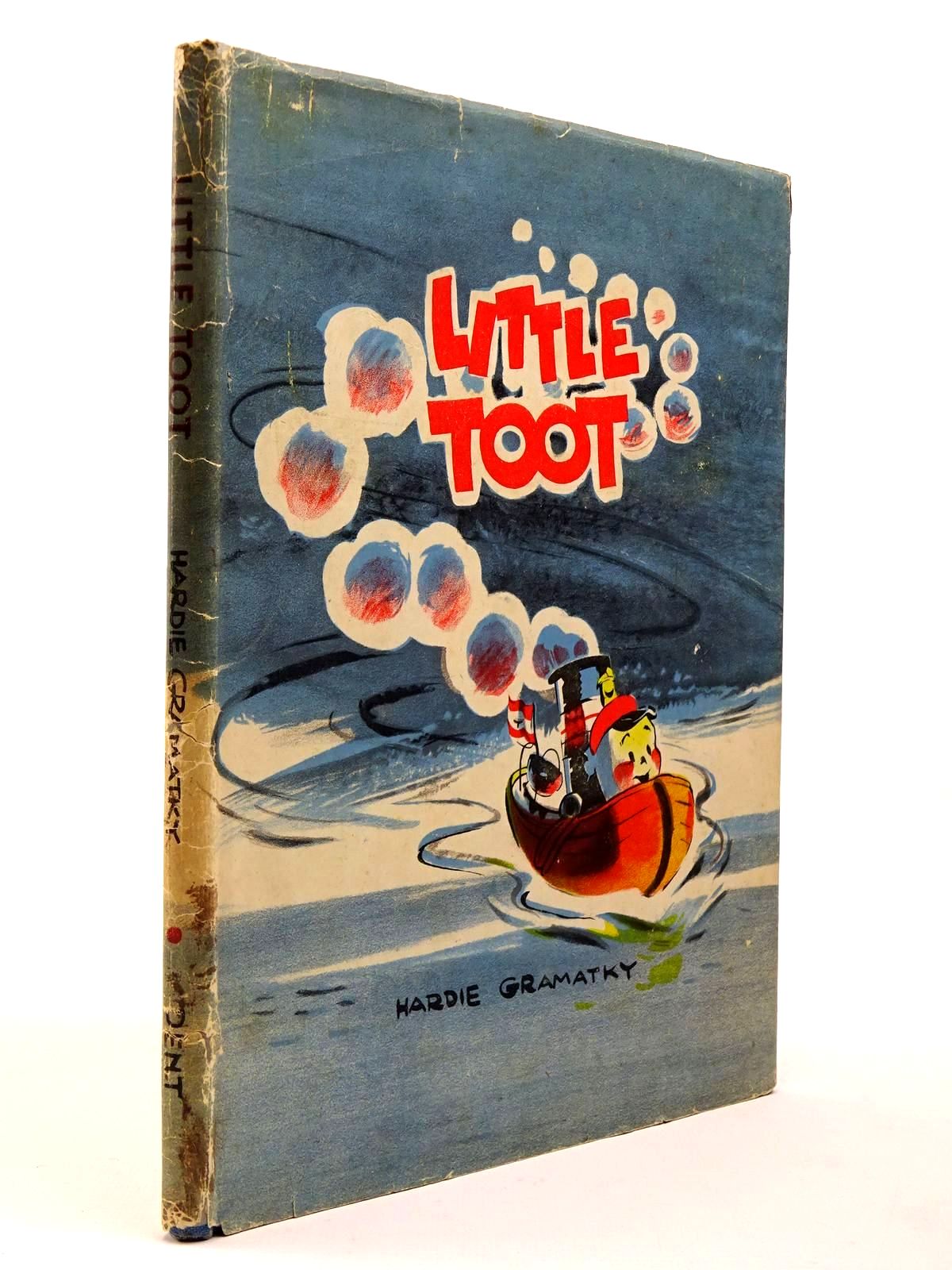 Large format. Blue cloth with silver titles and vignettes. Colour & b/w illustrations. Little Toot is the name of a tug-boat on a river. Some brown spotting to covers. Foxing to endpapers and outer page edges; a few to page margins. Wrapper is torn and creased with some repairs to verso; top torn of rear panel has a couple of inch loss - with piece inserted to 'disguise' loss.