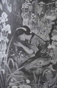 This story comes from Japan. There was once a man and his wife who for many years were happy and prosperous but when bad times came they were left with nothing but their beautiful daughter. The family set off to live in the countryside where the mother and daughter spent their time keeping the house and tending the garden, but the old man spent his time thinking about the riches he had lost and became so despondent that he took to his bed and never got up again.