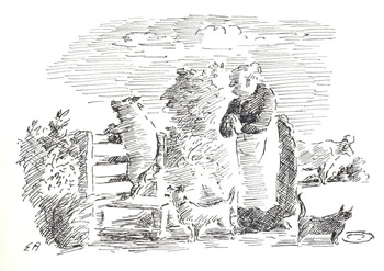 As well as choosing the tales for this book Edward Ardizzone also did the illustrations. His distinctive drawings compliment the tales beautifully. Sadly Edward Ardizzone died whilst working on the illustrations for a book of twenty-five folk tales, the illustrations for the eleven tales he had completed are used in this book. The remaining one, The Children in the Wood, uses illustrations which first appeared in 1972 in another edition of this poem published by The Bodley Head. My personal favourite in this book is the illustration at the start of The Old Woman and her Pig and, in particular, the dog looking up at the pig who is standing on the stile - is he saying 'you can do it' or 'get a move on!'?