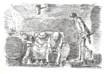 One of the tales I hadn't read before was The Three Sillies so I'll tell you a little more about it as, maybe, it's new to you too. It starts 'Once upon a time' (a good traditional opening line for a fairy tale), a farmer and his wife had a daughter who was courted by a gentleman. Each evening, when her suitor came to supper, the daughter would go down to the cellar to fetch beer. One evening she noticed a mallet stuck in the ceiling and had a terrible thought, what if she married, had a son and he came down the cellar to get beer and the mallet fell on his head and killed him! So upsetting was this thought that she sat down and cried. Her parents came down to the cellar, one by one, and then having heard her tale of woe also sat down with her and cried. Her suitor eventually came to see why no-one had come back upstairs. He listened to their fears then reached up to the ceiling and pulled the mallet down. He stated he had never met three such big sillies, now he was going travelling and if he met three sillier people he would come back and marry the daughter.