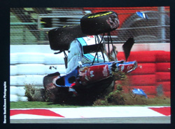 Schumacher had won the opening two races of the season and was already looking to be a serious challenge to world champion Ayrton Senna. The third race meeting of the season, the San Marino Grand Prix at Imola, started badly on the Friday afternoon when Rubens Barrichello was incredibly lucky to escape with only superficial injuries after his car vaulted the kerb and slammed sideways into the tyre barrier (Right). Worse was to follow.