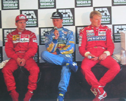 Left: Larini, Schumacher and Hakkinen are subdued after the race.