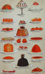 For those whose households did not run to servants, more convenience foods were coming onto the market which meant that cooking at home was made easier. Products such as desiccated coconut, Merrills' Ice Cream Mixture and powdered gelatine enabled Victorian cooks to be more adventurous in satisfying their love of puddings and cakes. Elaborate jellies and blancmanges were an impressive feature of Victorian dining. As Spours quotes in her book, "Entertaining was not just about the food, but also about the decoration of the table"