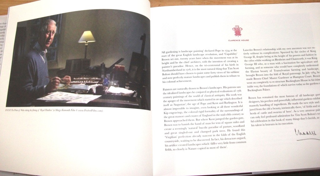 Some of the famous buildings he worked on include Warwick Castle, Chatsworth House and Burghley House. In 1763 he was commissioned by the 4th Duke of Marlborough to undertake work at Blenheim Palace. In London too, Brown’s influence continued as he became the Master Gardener for King George III at Hampton Court. This is mentioned by King Charles in the Foreword of another book that has just come into stock called “A Brush with Brown” by Tim Scott Bolton.