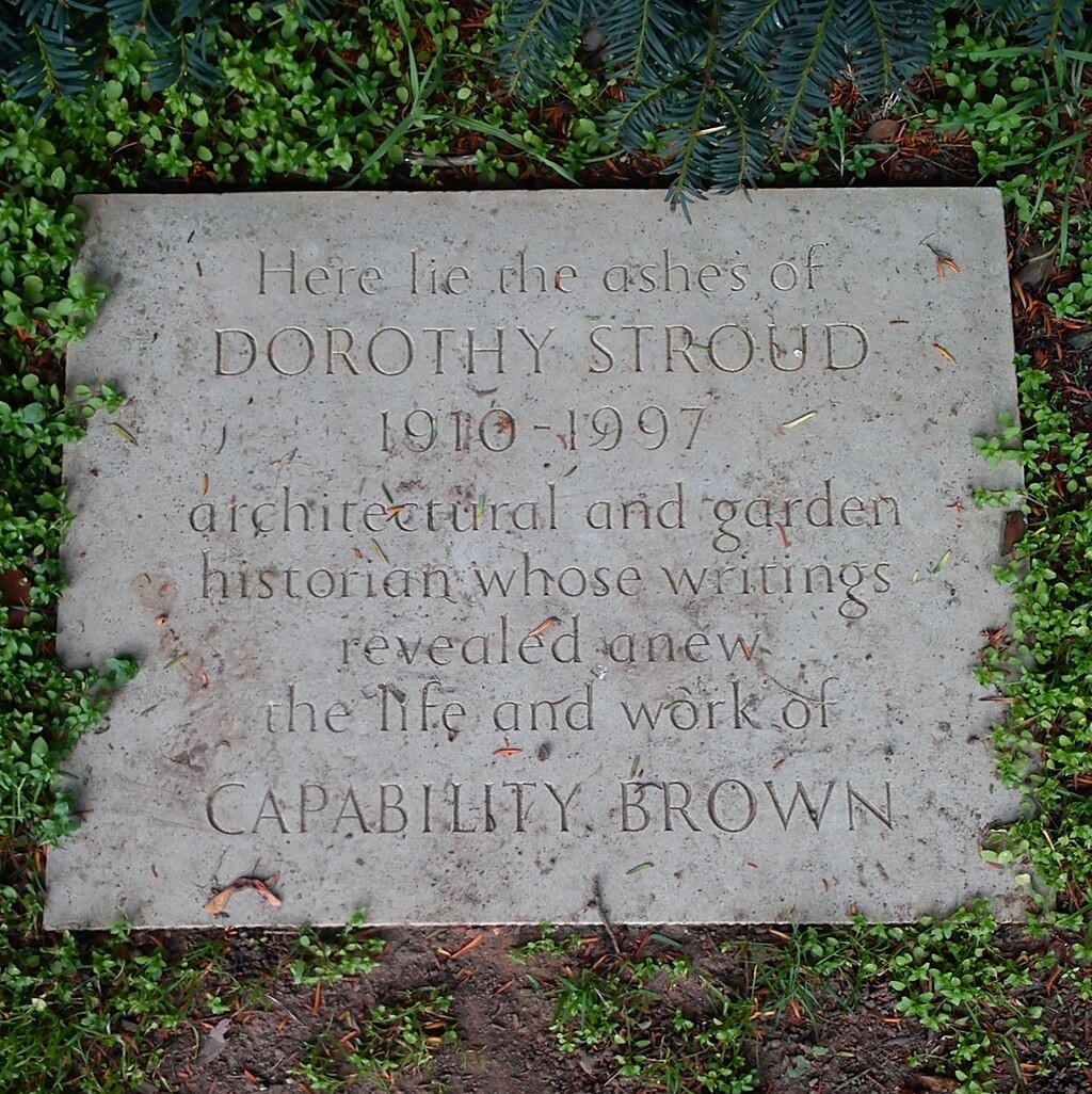 Dorothy Stroud was born in London in 1910 and was a garden and landscape architectural historian. She never married and spent most of her life managing a museum called Sir John Soane’s Museum in Lincoln’s Inn Fields in London. All her research work was done away from the museum, on her days off and writing mostly in the evenings. She was particularly fascinated by Capability Brown and published a book about him in 1950. She also published books on Soane’s architecture and a biography of landscape gardeners Humphrey Repton and Henry Holland. She served on the Historic Buildings Council between 1974 and 1982 and was also vice-president of the Garden History Society from 1982 until her death in 1997. When Dorothy Stroud died in 1997 at the age of 87 her ashes went to Croome Park and there is a plaque that shows her role in recording the life and works of him.
