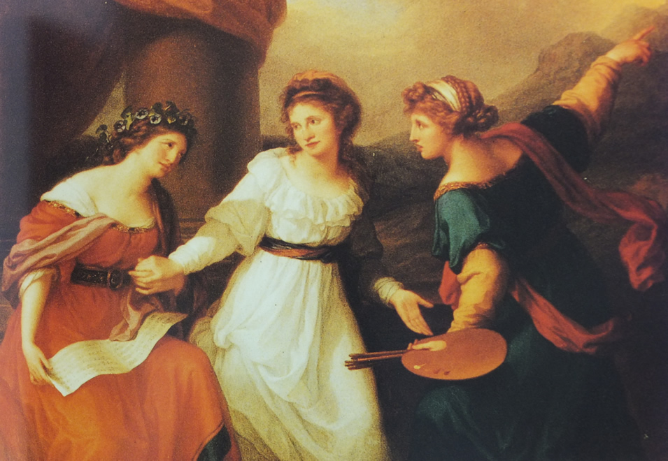 Above left; Angelica Kauffmann 'The artist hesitating between the Arts of Music and Painting'
