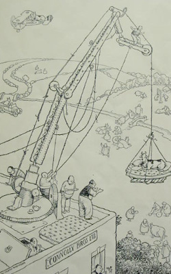 His longest association was with Connolly Brothers (curriers) Ltd, producers of leather for upholstery and more importantly the motor trade. Between 1920 – 1939 Heath Robinson was commissioned to produce 12 booklets that were circulated to clients at the Motor Show.