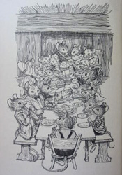 Mouse number 1397869 needs a name and Mrs Peck decides his must begin with 'T' as she has named her children alphabetically, starting with Aristotle finishing with Sylvester and going through Cadwallader, Hildegard, Mordecat, Peregrine and Quentin to name but a few! The family is getting ready for bed when suddenly Grandpa Aristide says "Thursday! A very good name." It begins with the letter 'T' and the day is Thursday. And so mouse number 1397869 becomes Thursday and an HON CUB (TEMP) - Honorary Cupboardosity (Temporary)!
