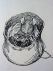 Mr. and Mrs. Peck live in the cupboard with their 19 children as well as Grandpa Aristide, Uncle Washington and Ponty. When asked his name the stranger replies "1397869". The family is bemused by this until he explains that he has escaped from the Home for Waif-mice and Stray-mice, that he is an orphan and was found on a doorstep. The resident mice are impressed when he tells how he escaped by digging a hole under the fence. He then hitched a lift in a Grumbly's (the mouse word for a human being) lorry to the Fair where he enjoyed himself on the rides before tying his bag onto a balloon which has been released as part of a balloon race, and taking to the air.