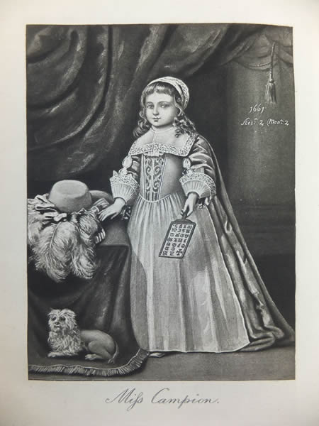 Chapter five, interestingly looks at the horn-book in English prints and pictures. Even though this was such a common way of learning during the period, Tuer notes that the horn-book ‘appears comparatively seldom in English prints and pictures'. He carries on to refer to the portrait (used as frontis in Volume I of the book - below left), dated 1661 and titled ‘Miss Campion’, who according to the inscription was aged two years and two months. It gives a clear view of the horn-book and the alphabet on it.