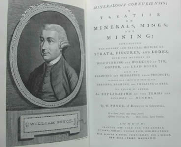 Published in 1778 Mineralogia Cornubiensis is the first and best great classic work on Cornish mining. It was written by William Pryce(1725-1790) from Redruth in Cornwall and his intimate connection with mining and knowledge enabled him to produce an exceptionally detailed account of Cornish mining at a particularly interesting period of its development.