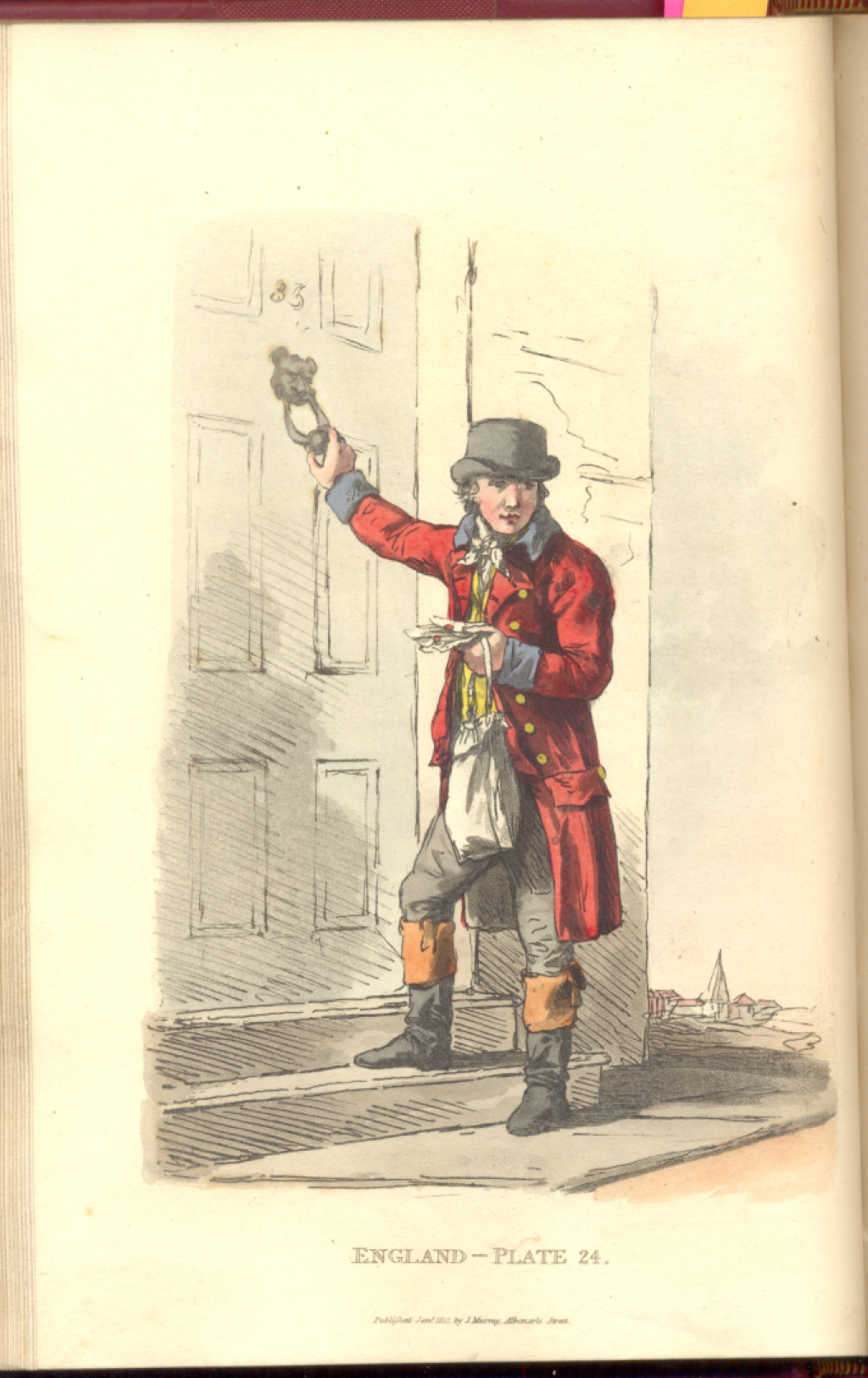 I love the red of Postman Pat’s livery! In those days, these postmen would go around their assigned territory with a bell, from five in the morning until six o’clock in the evening, and collect all the letters that have not been put into the different receiving-houses before the former hour… In other words, if your letter wasn’t posted before five o’clock, you still had a chance to hand it to the postie in the streets. I think our postmen today might have something to say about that if we asked them to do this.